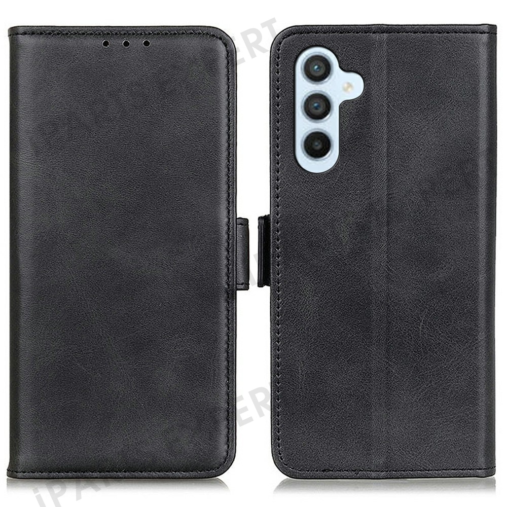 For Samsung Galaxy A26 5G Case Stand Cowhide Texture PU Leather Phone Cover - Black
