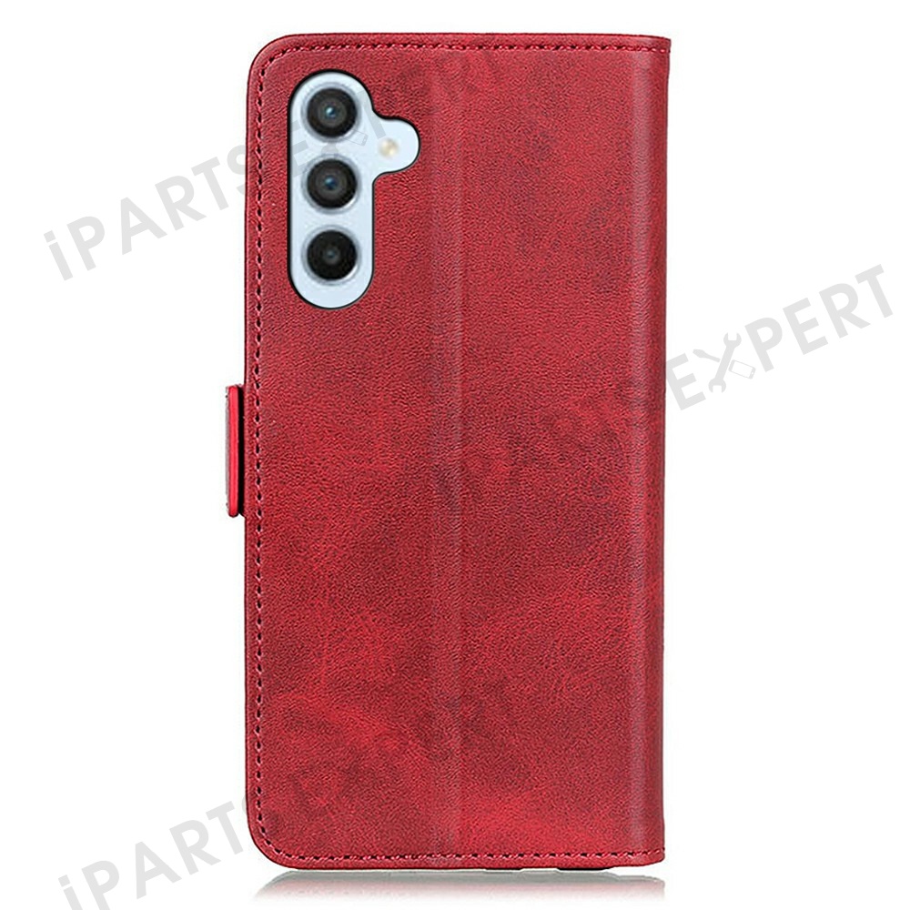 For Samsung Galaxy A26 5G Case Stand Cowhide Texture PU Leather Phone Cover - Red