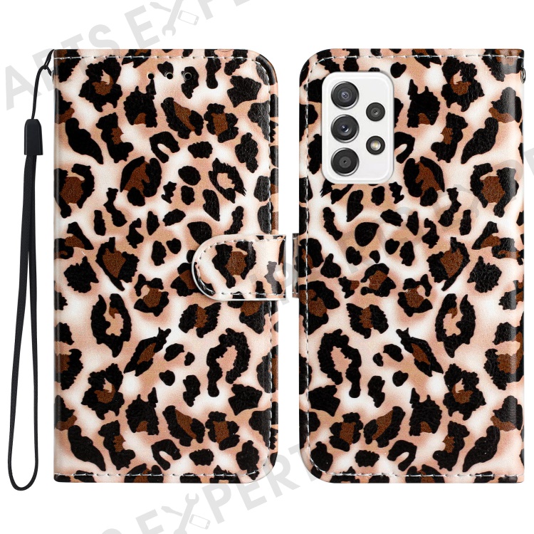 For Samsung Galaxy A32 4G (EU Version) Pattern Printing Shockproof Phone Case Leather Wallet Flip Stand Shell - Leopard Print