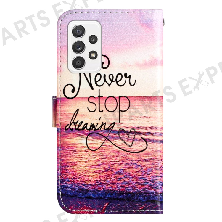 For Samsung Galaxy A32 4G (EU Version) Pattern Printing Shockproof Phone Case Leather Wallet Flip Stand Shell - Never Stop Dreaming