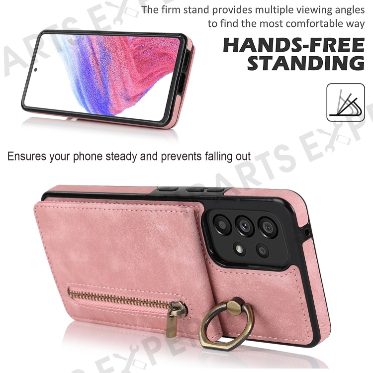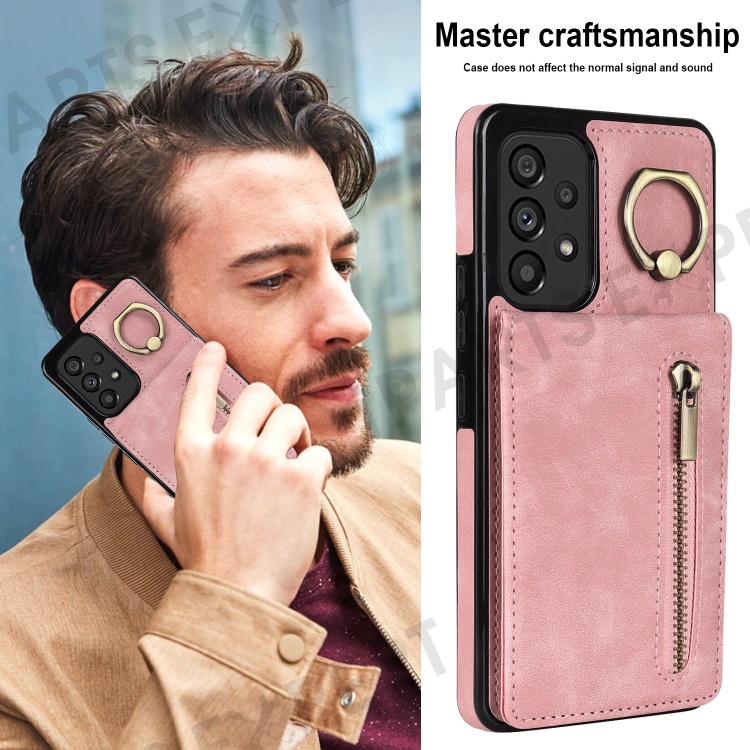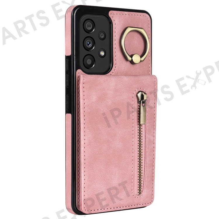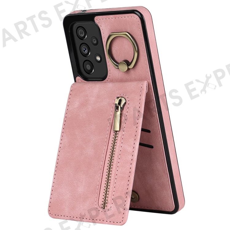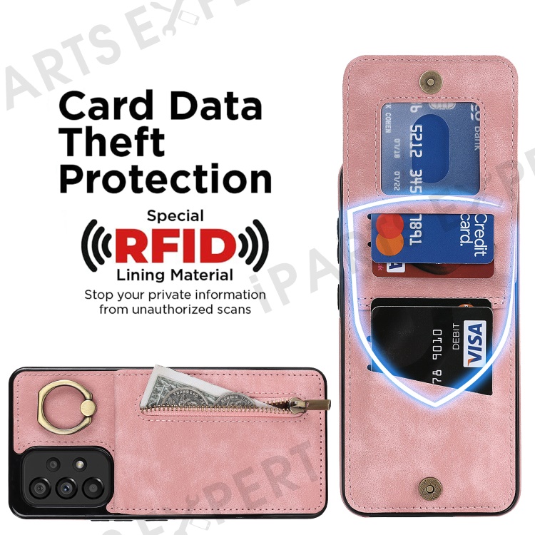 For Samsung Galaxy A33 5G RFID Blocking Kickstand Case Retro PU+TPU Shockproof Wallet Phone Cover - Pink