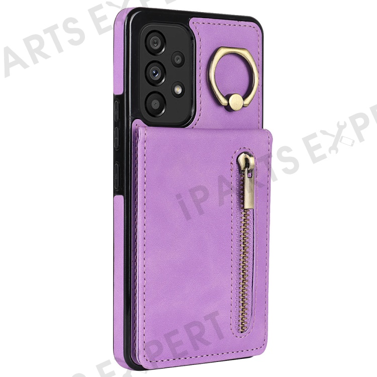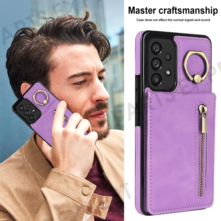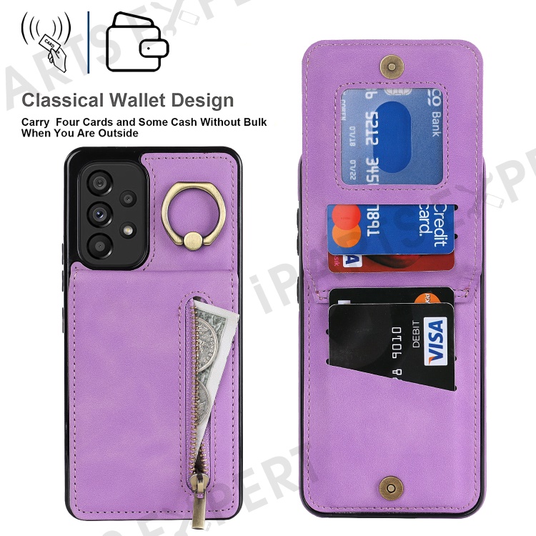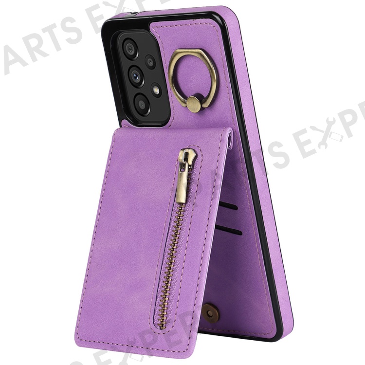 For Samsung Galaxy A33 5G RFID Blocking Kickstand Case Retro PU+TPU Shockproof Wallet Phone Cover - Purple