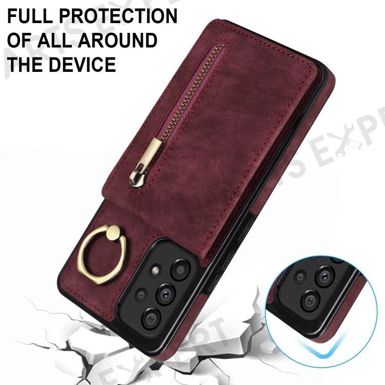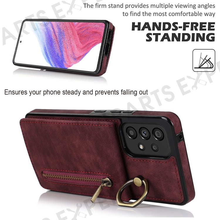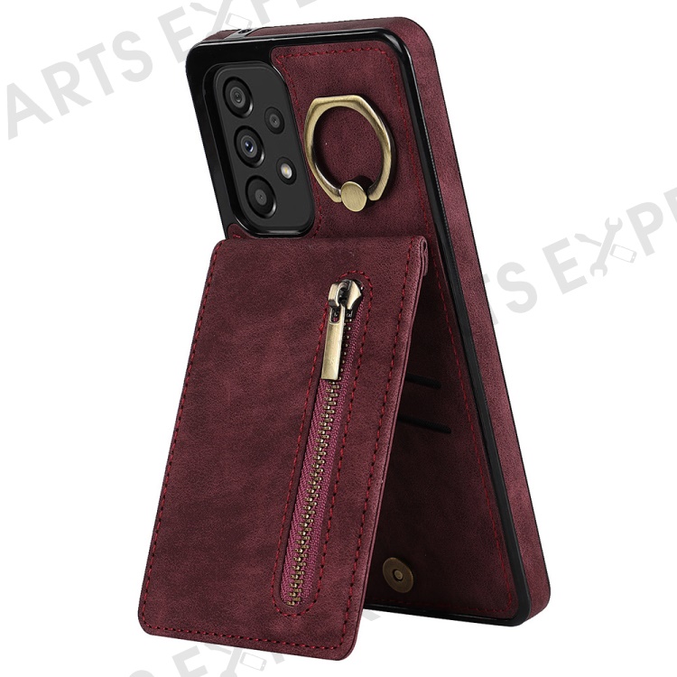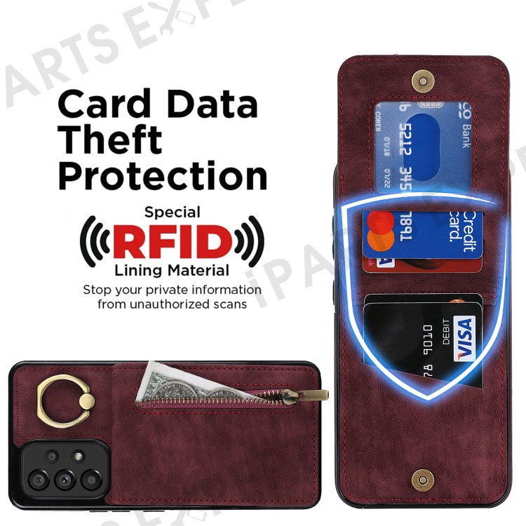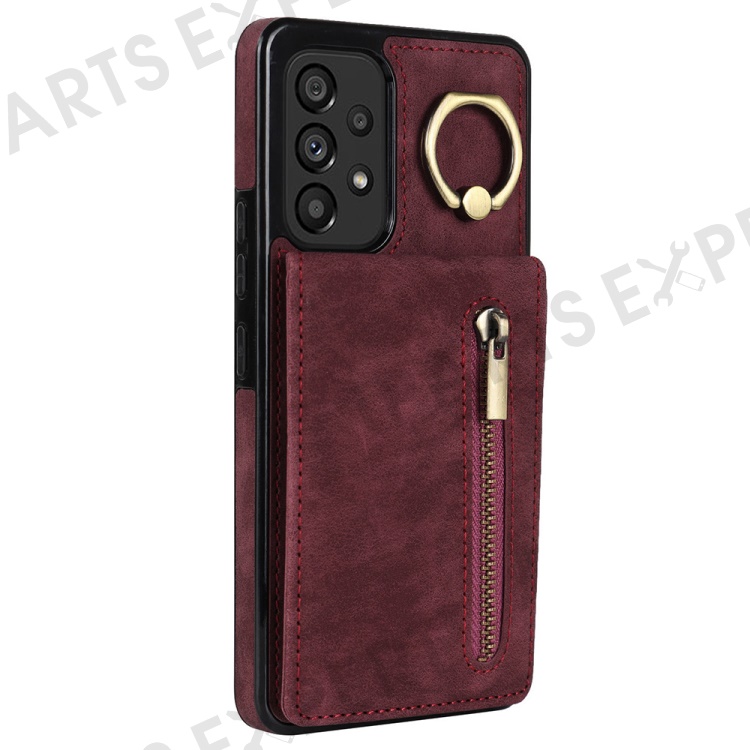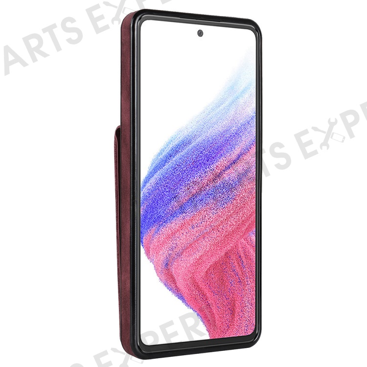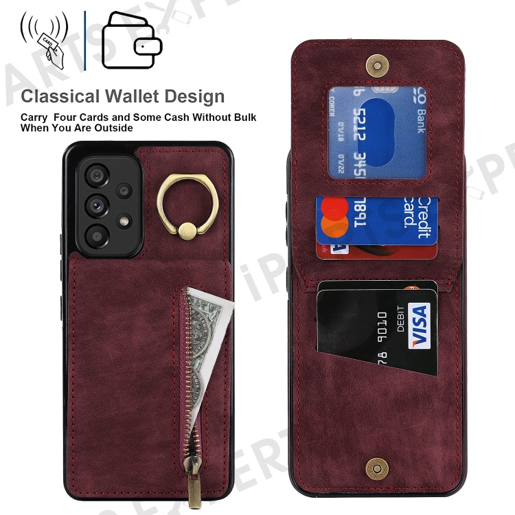 For Samsung Galaxy A33 5G RFID Blocking Kickstand Case Retro PU+TPU Shockproof Wallet Phone Cover - Wine Red