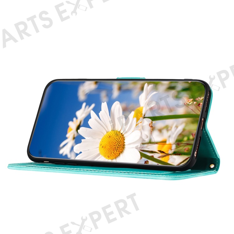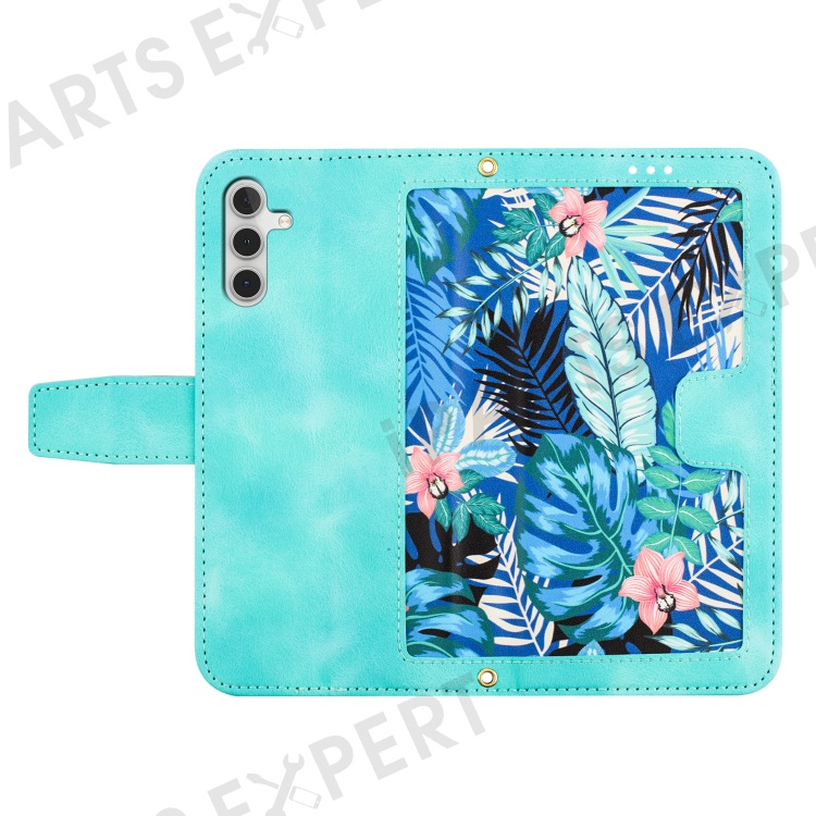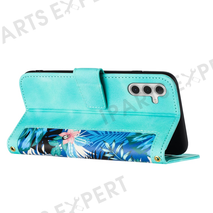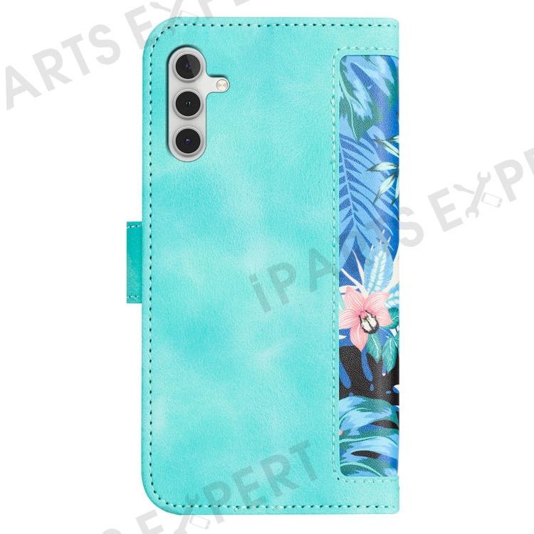 For Samsung Galaxy A34 5G Phone Case Flower Pattern Printing Stand Leather Cover with Card Slots - Green