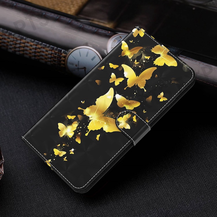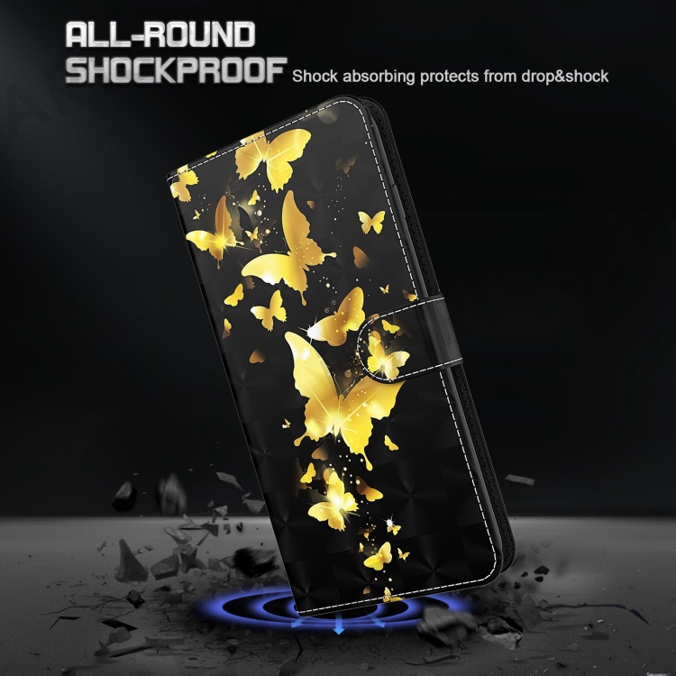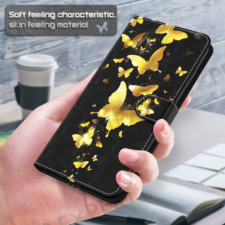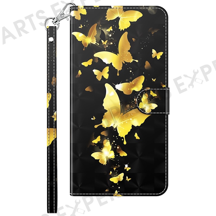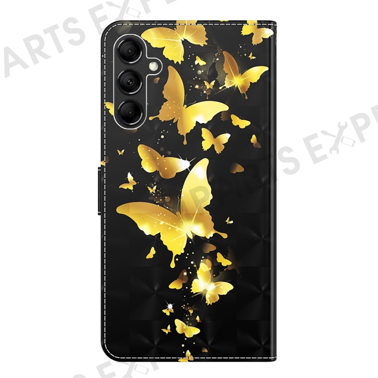 For Samsung Galaxy A34 5G PU Leather Phone Case 3D Pattern Printing Stand Wallet Flip Cover - Golden Butterflies
