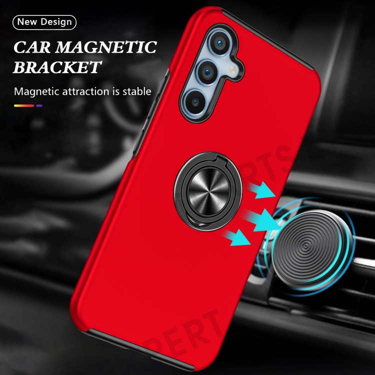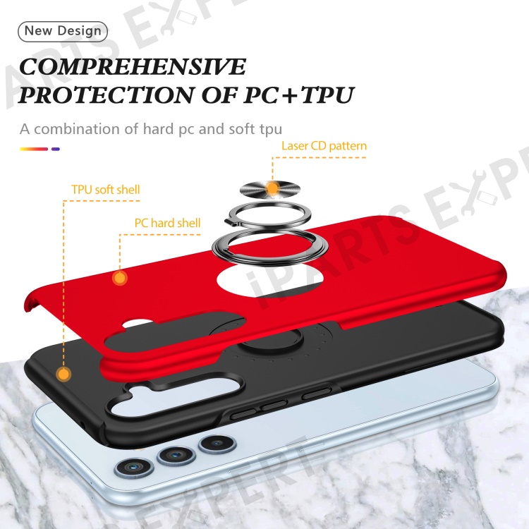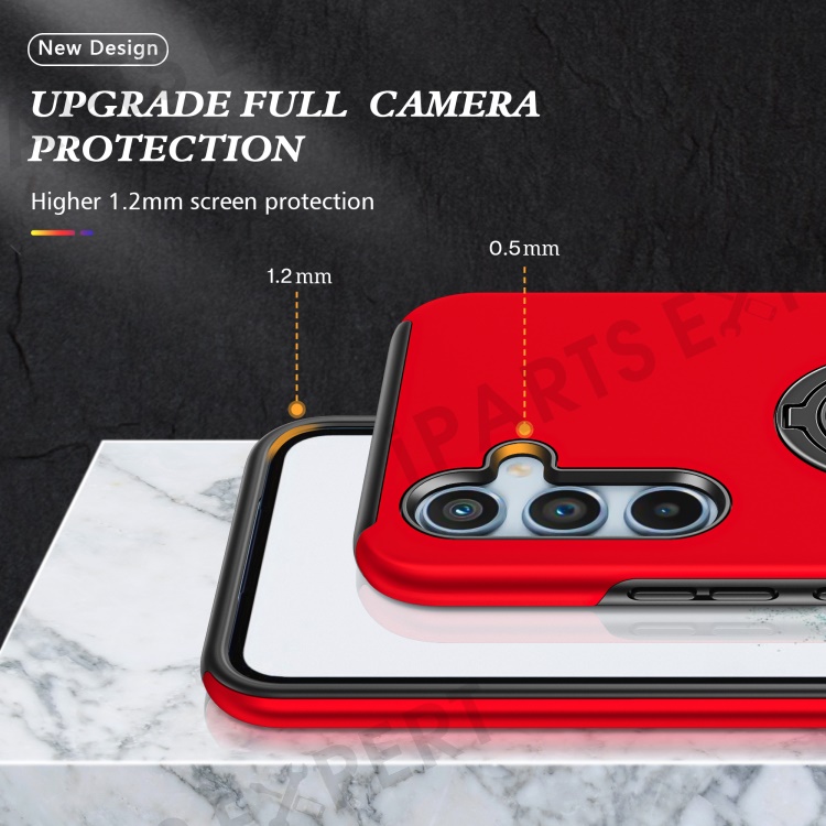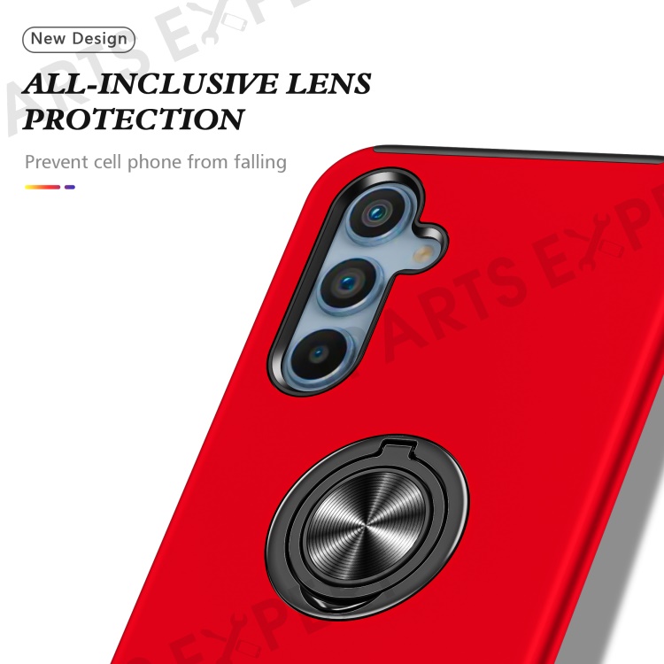 For Samsung Galaxy A34 5G Rotary Ring Kickstand Phone Case PC+TPU Anti-drop Back Cover - Red