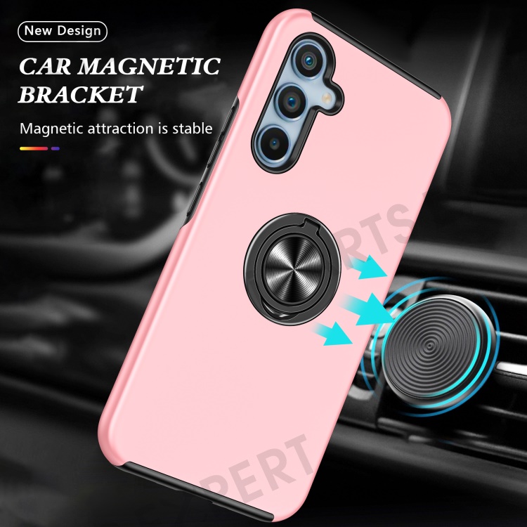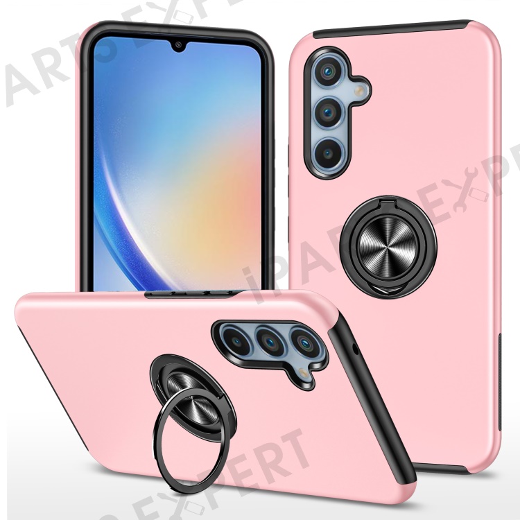 For Samsung Galaxy A34 5G Rotary Ring Kickstand Phone Case PC+TPU Anti-drop Back Cover - Rose Gold