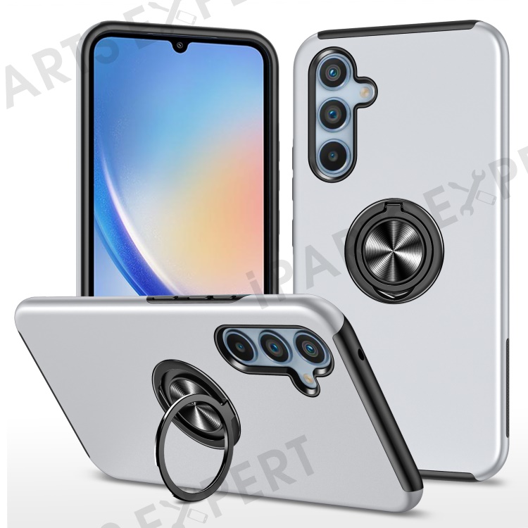 For Samsung Galaxy A34 5G Rotary Ring Kickstand Phone Case PC+TPU Anti-drop Back Cover - Silver