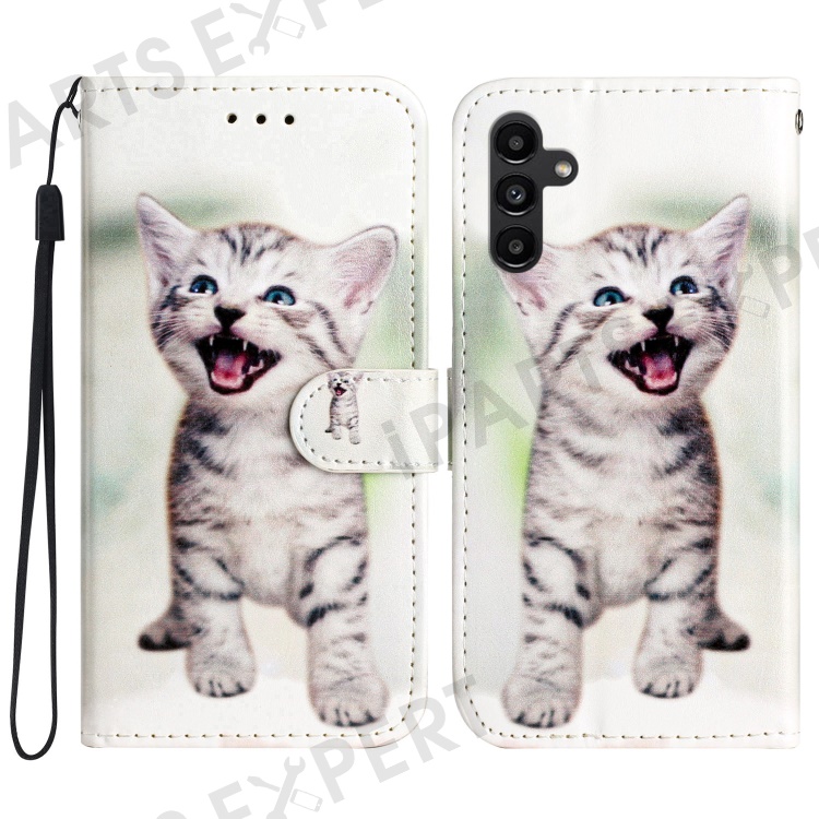For Samsung Galaxy A34 5G Wallet Phone Case PU Leather Pattern Printing Stand Flip Cover - Happy Cat