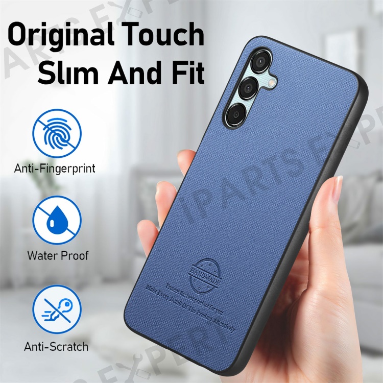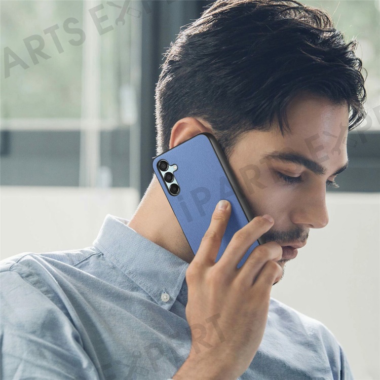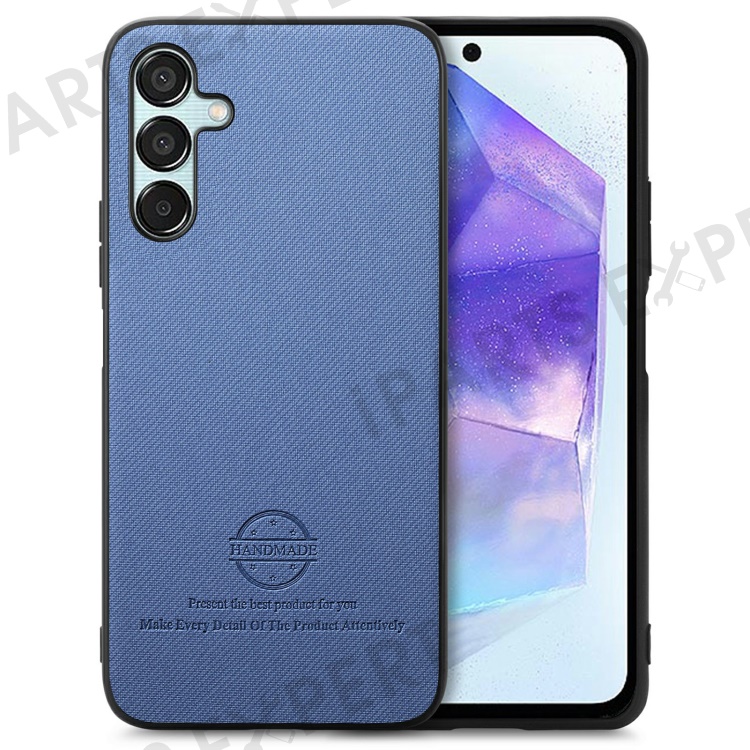 For Samsung Galaxy A35 5G Case Cloth Texture Leather+PC+TPU Anti-Drop Phone Cover - Blue