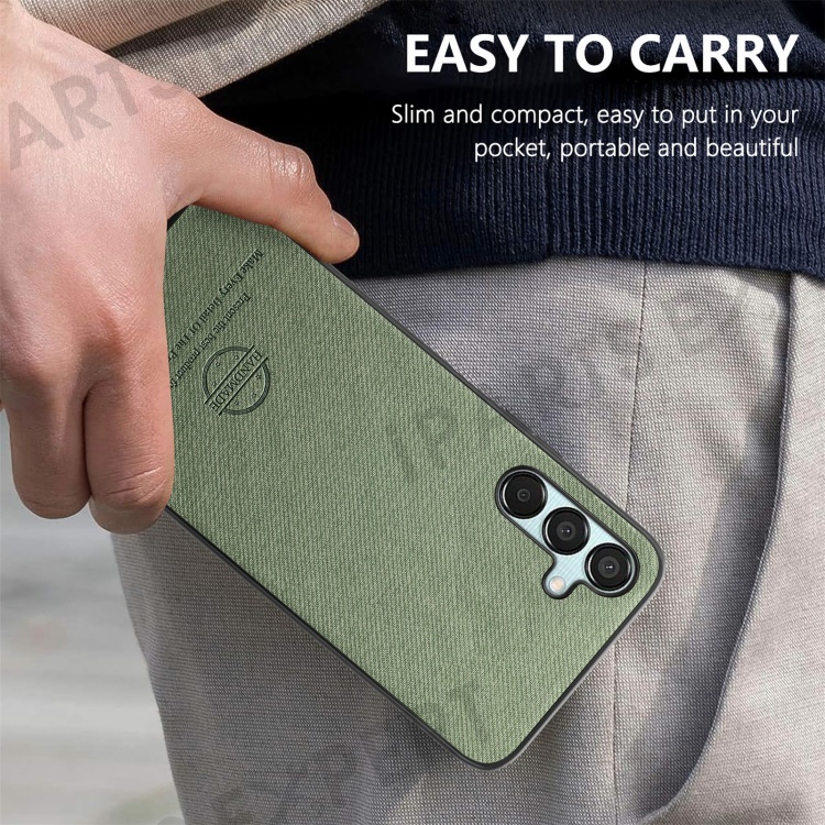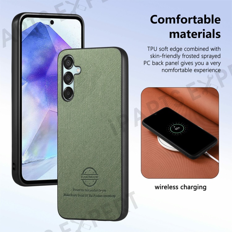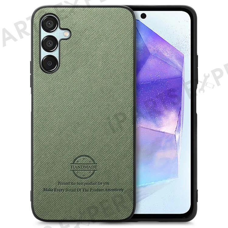 For Samsung Galaxy A35 5G Case Cloth Texture Leather+PC+TPU Anti-Drop Phone Cover - Green