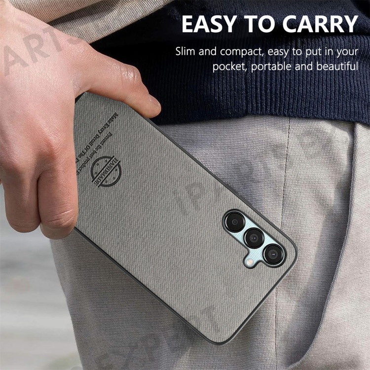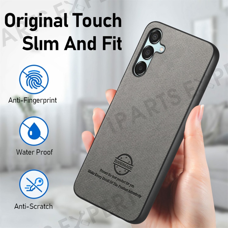 For Samsung Galaxy A35 5G Case Cloth Texture Leather+PC+TPU Anti-Drop Phone Cover - Grey