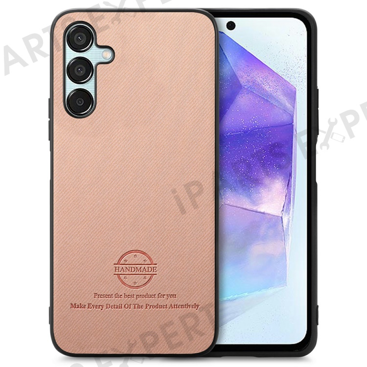 For Samsung Galaxy A35 5G Case Cloth Texture Leather+PC+TPU Anti-Drop Phone Cover - Pink