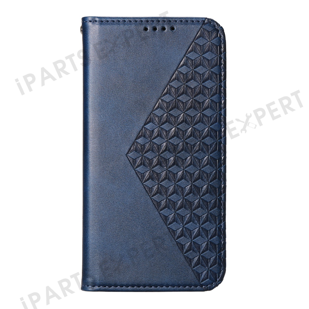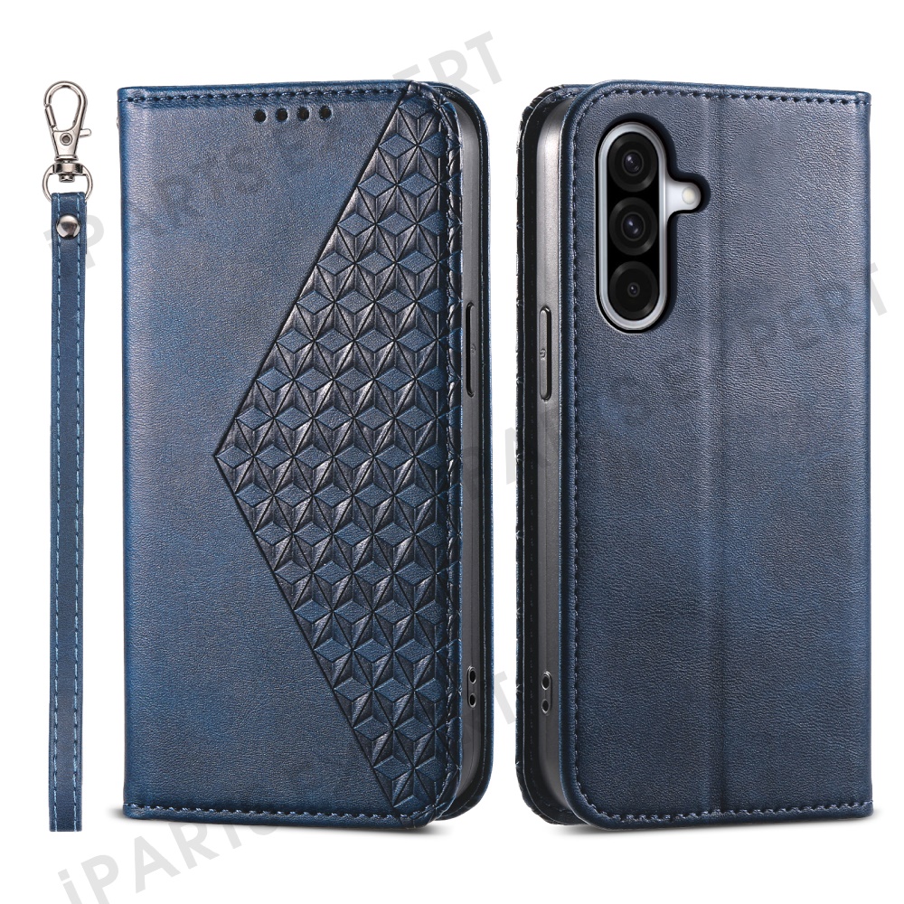 For Samsung Galaxy A35 5G Case Splicing Rhombus PU Leather+TPU Wallet Cover - Blue