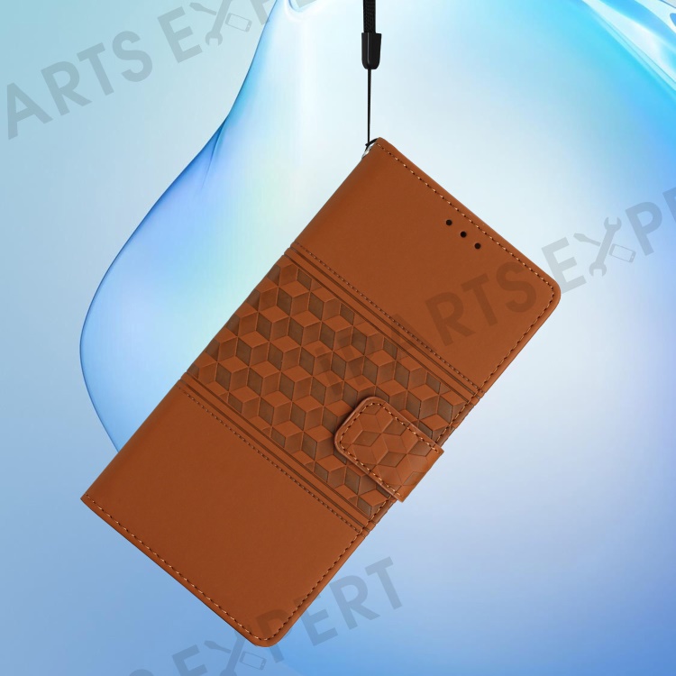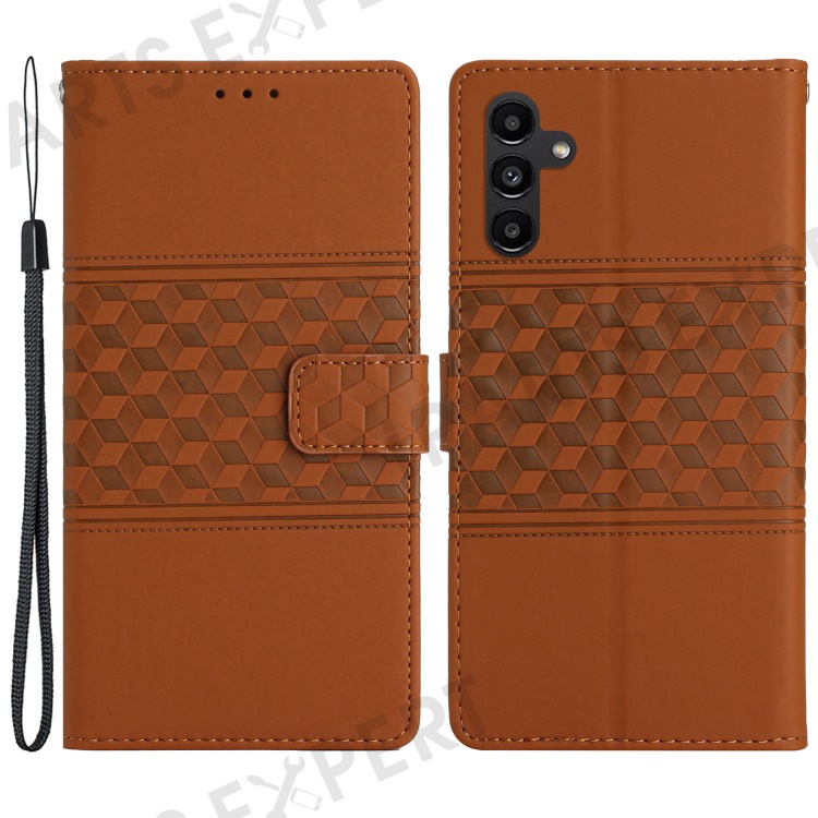 For Samsung Galaxy A35 5G Phone Case Imprinted Rhombus Wallet Stand Leather Cover - Brown