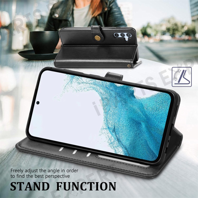 For Samsung Galaxy A36 5G Case Leather Phone Case Wallet Stand Cover with Wrist Strap - Black