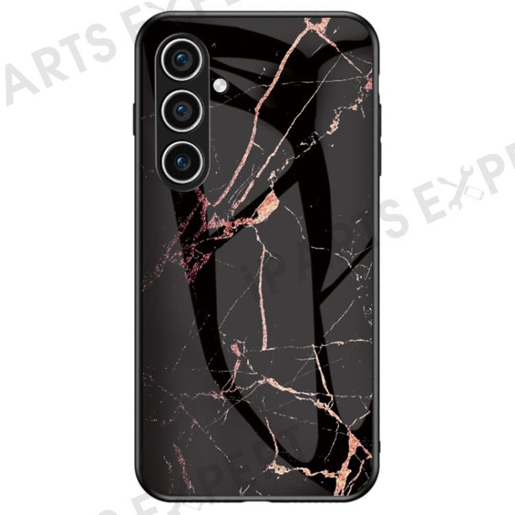 For Samsung Galaxy A36 5G Case Marble Pattern Tempered Glass + PC + TPU Protective Phone Cover - Gold Black Marble