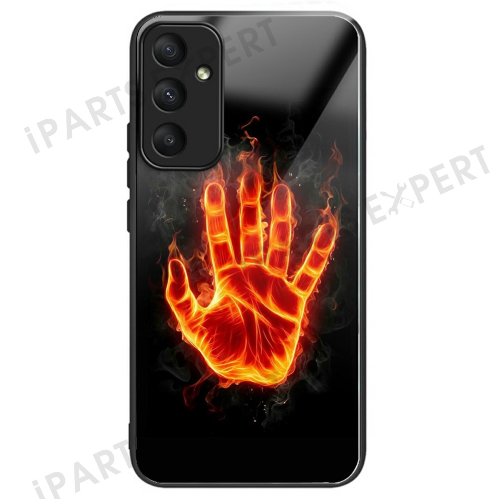 For Samsung Galaxy A36 5G Case Pattern Printing Tempered Glass TPU Drop-Proof Phone Cover - Flame Palm