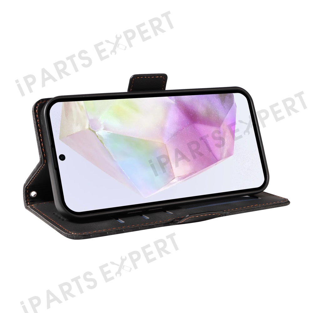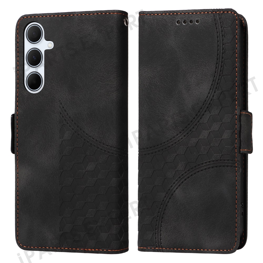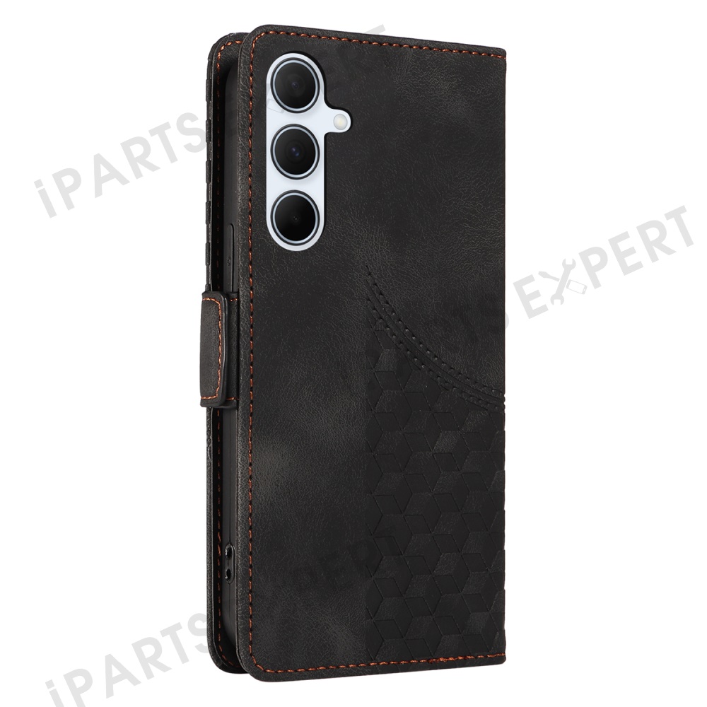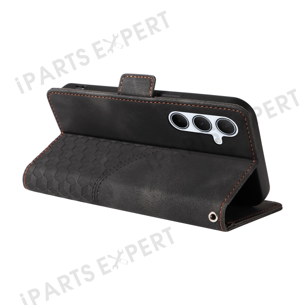 For Samsung Galaxy A36 5G Case PU Leather Phone Cover Rhombus Starry Imprinted - Black
