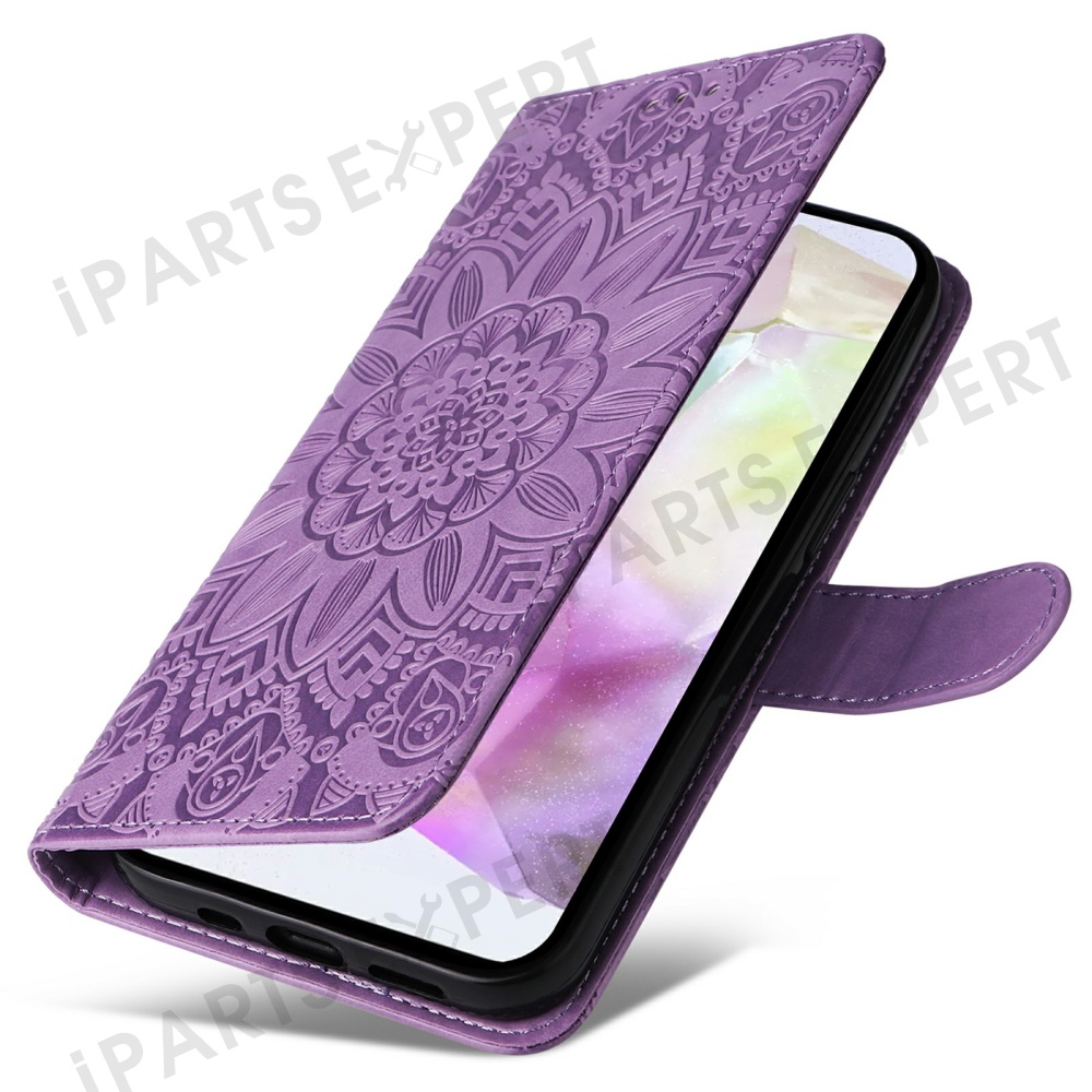For Samsung Galaxy A36 5G Case Sunflower Imprint Leather Wallet Phone Cover - Purple