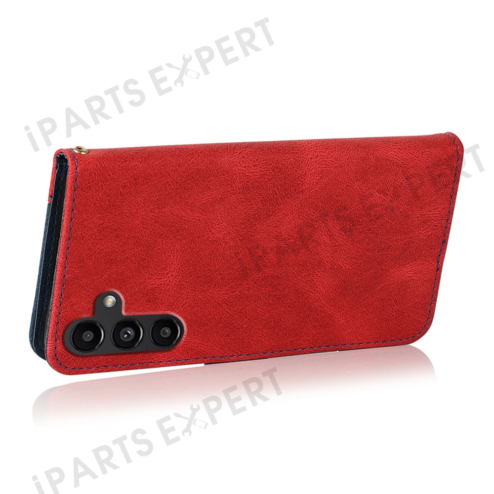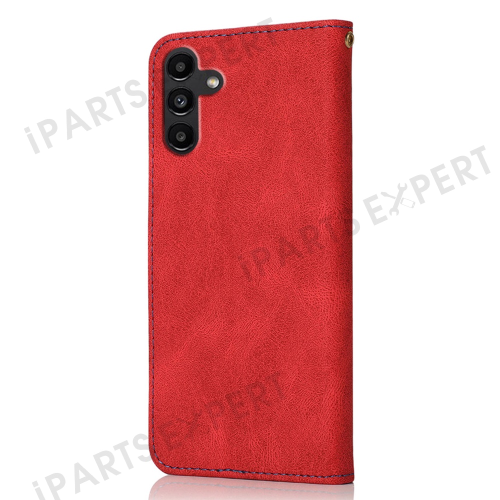 For Samsung Galaxy A36 5G Cover Color Splicing Wallet Stand Leather Phone Case with Wrist Strap - Red Blue
