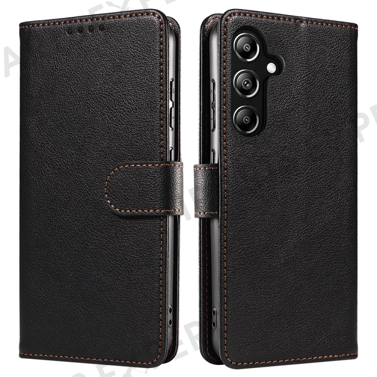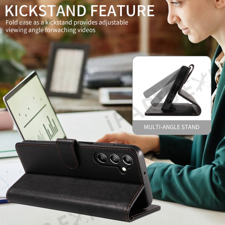 For Samsung Galaxy A36 5G Leather Case Litchi Texture RFID Blocking Wallet Stand Phone Cover - Black