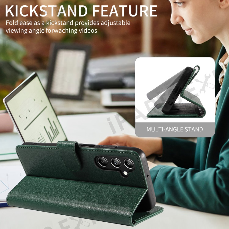 For Samsung Galaxy A36 5G Leather Case Litchi Texture RFID Blocking Wallet Stand Phone Cover - Green