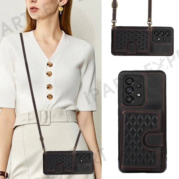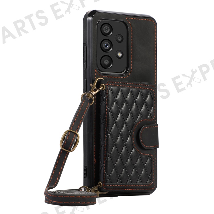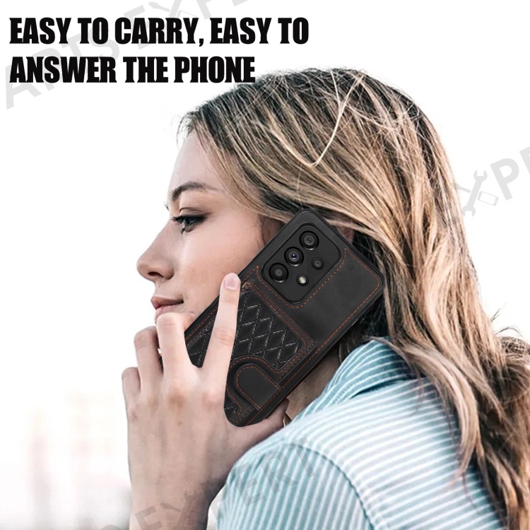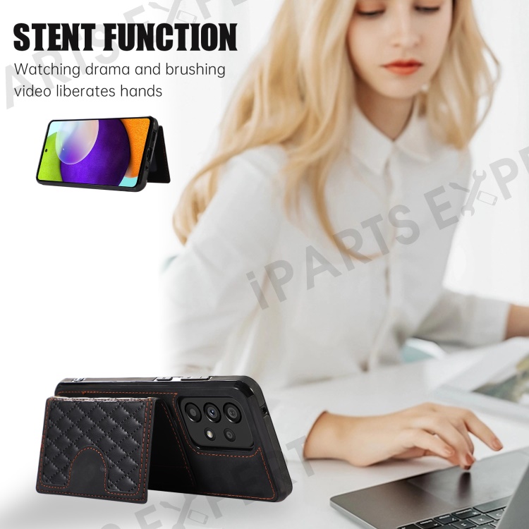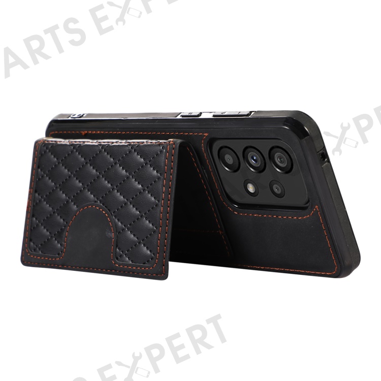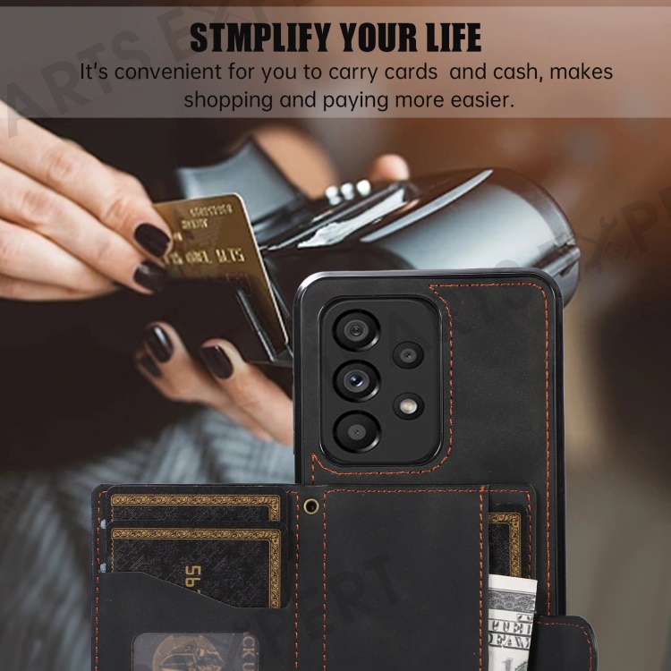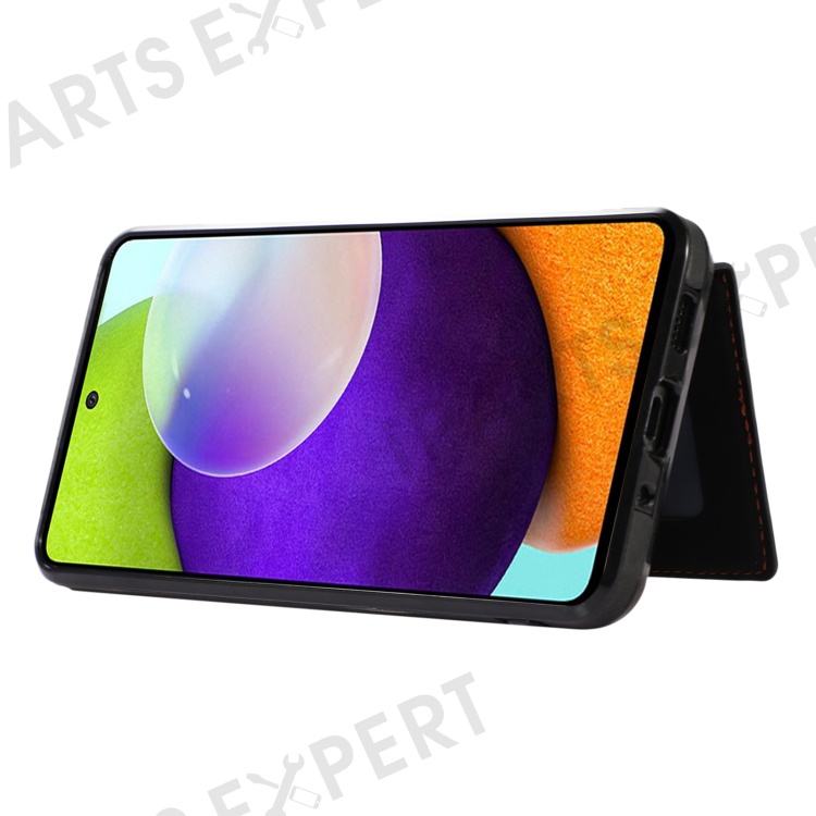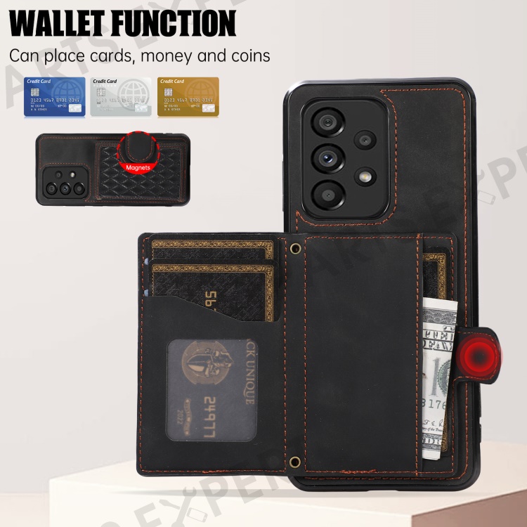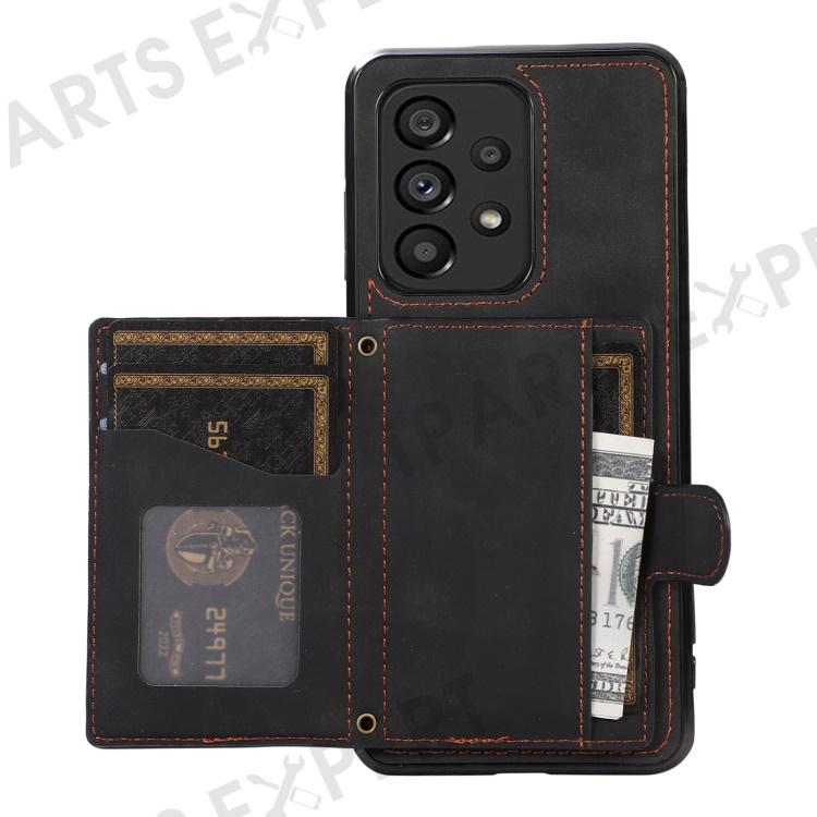For Samsung Galaxy A53 5G Card Holder Kickstand Phone Case TPU+PU Leather Cover - Black