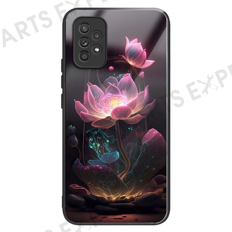 For Samsung Galaxy A53 5G Case Pattern Design Anti-Scratch Tempered Glass Phone Cover - Pink Lotus