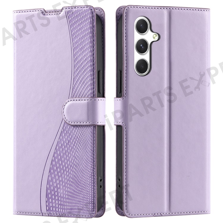 For Samsung Galaxy A54 5G Case Dots Imprinted PU Leather Flip Phone Cover with Card Slot, Strap - Purple