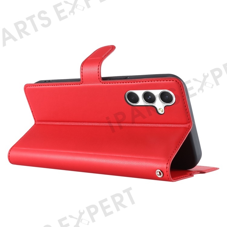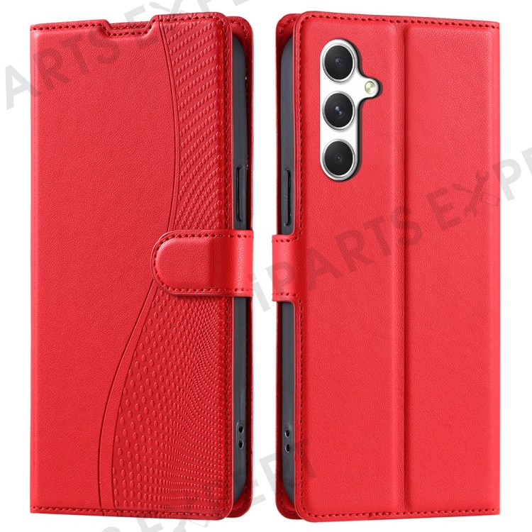 For Samsung Galaxy A54 5G Case Dots Imprinted PU Leather Flip Phone Cover with Card Slot, Strap - Red