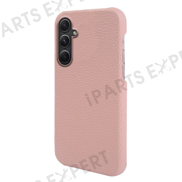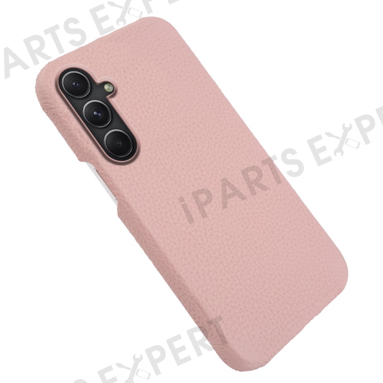 For Samsung Galaxy A54 5G Shock-absorbing Phone Case Genuine Cow Leather Coated PC Shell - Pink