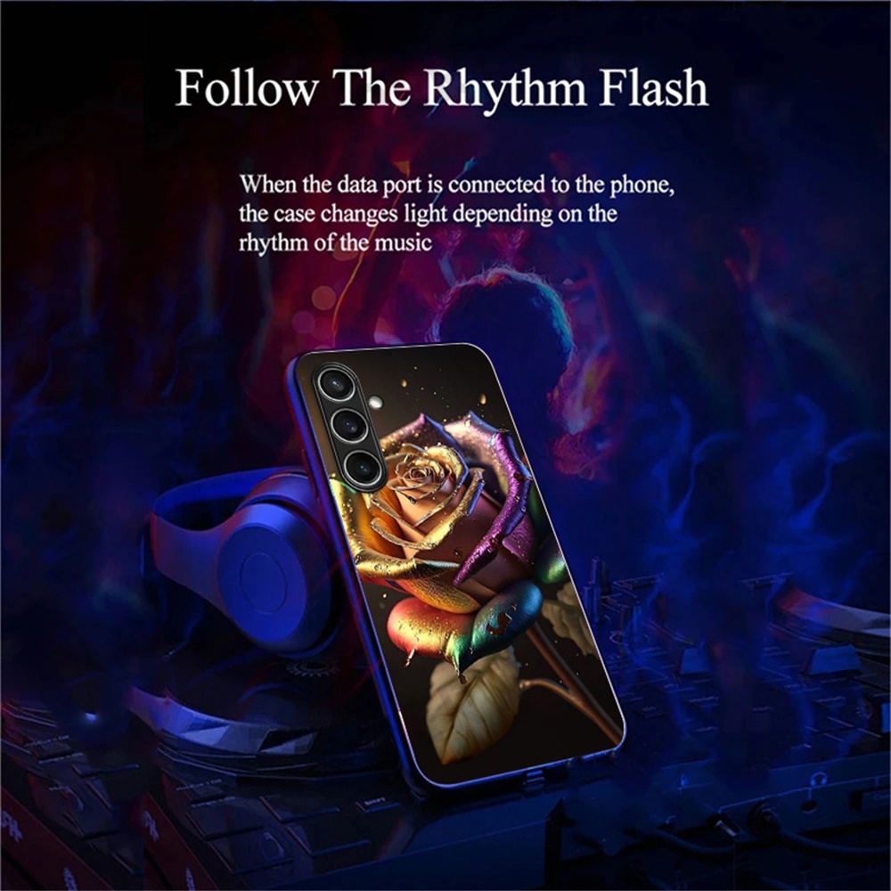 For Samsung Galaxy A56 5G Case Call Flash Series Pattern Printing Tempered Glass + TPU Combo Phone Case - Colorful Rose