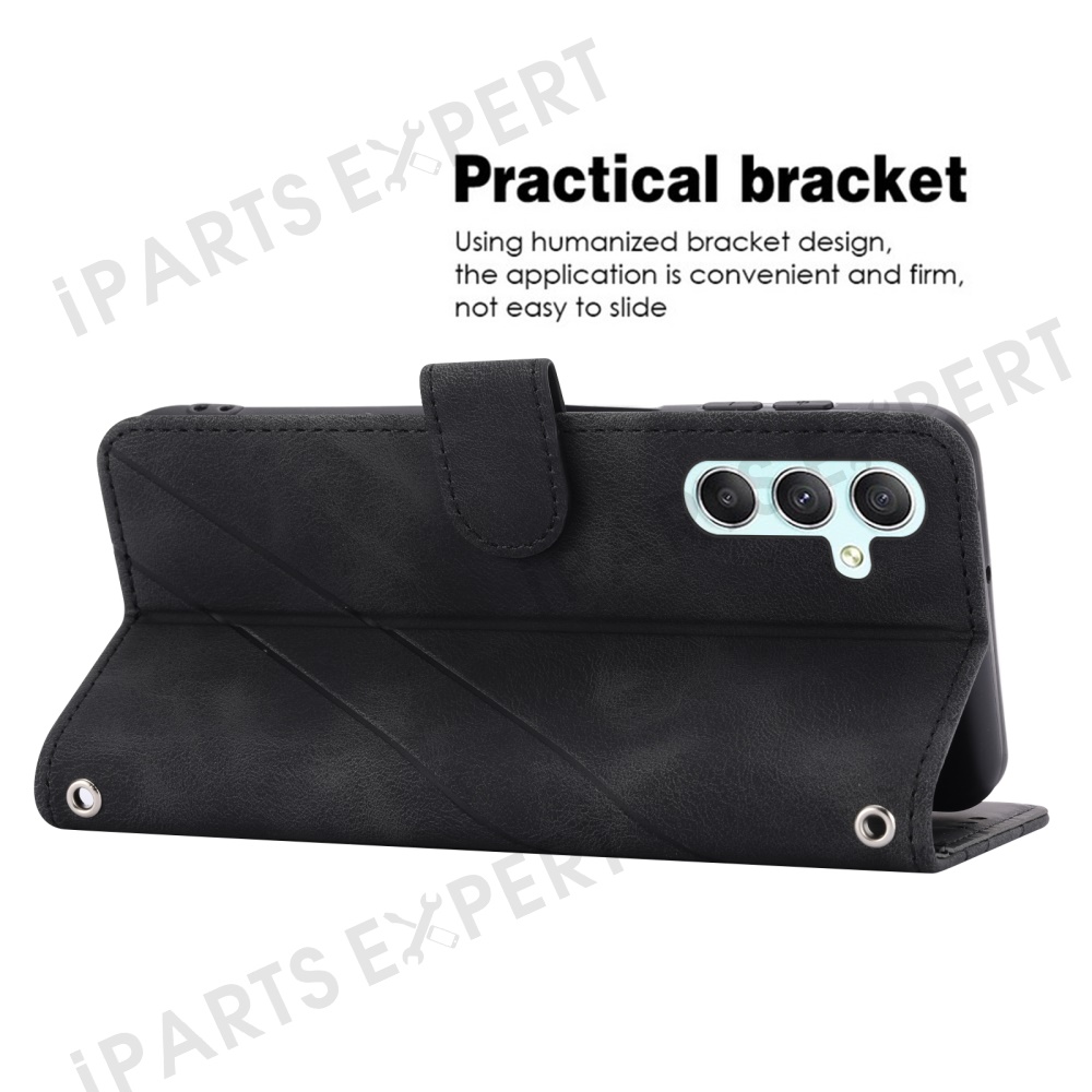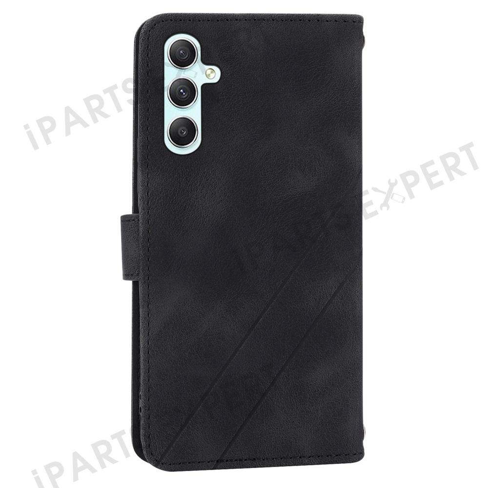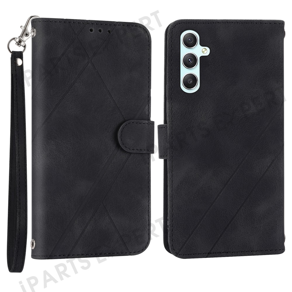 For Samsung Galaxy A56 5G Case Imprinted Line Leather Phone Cover with Handy Strap - Black