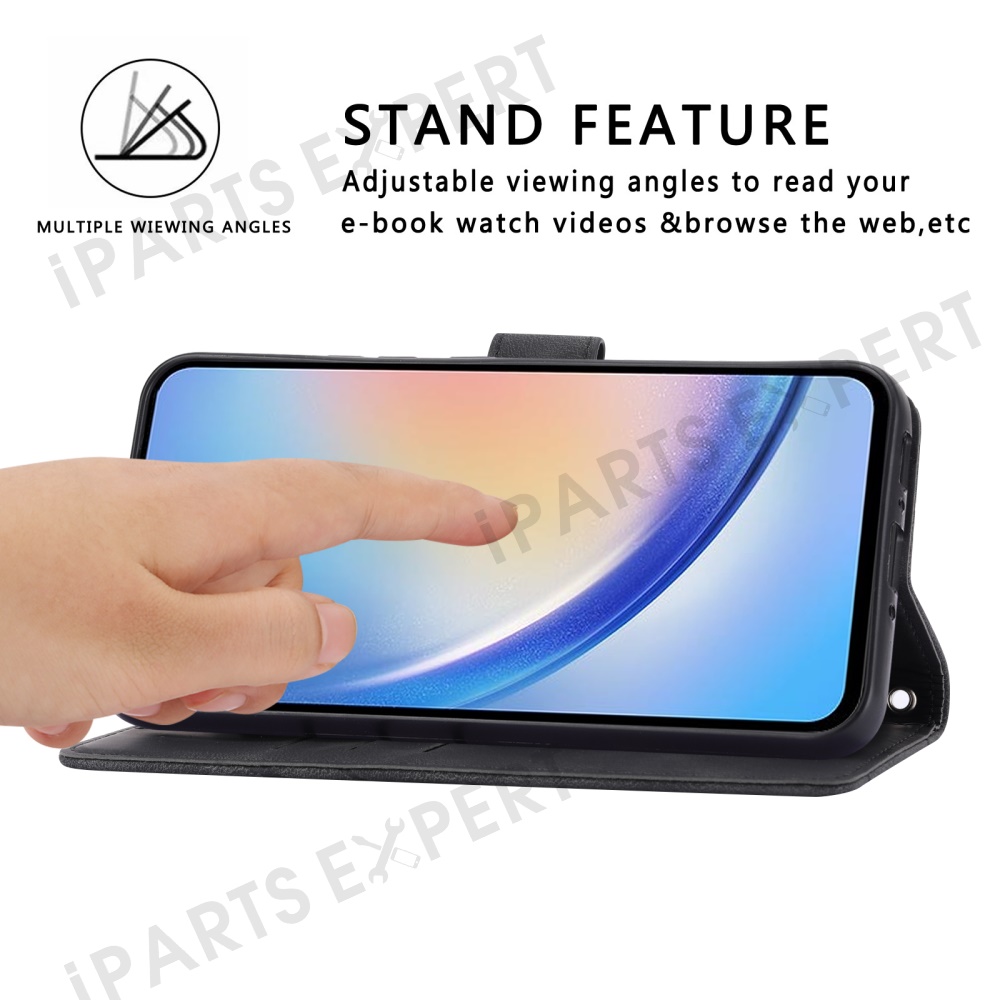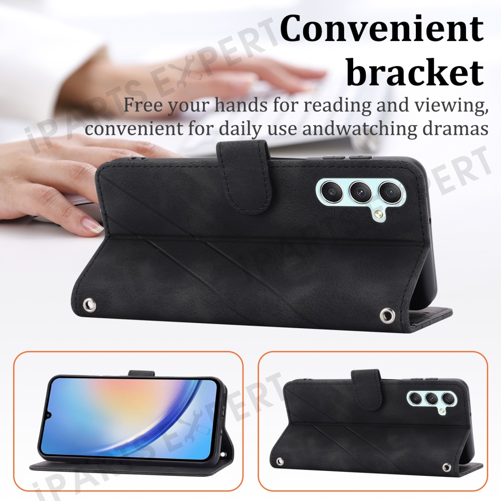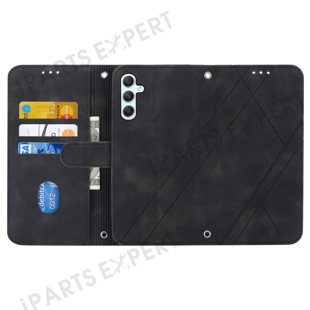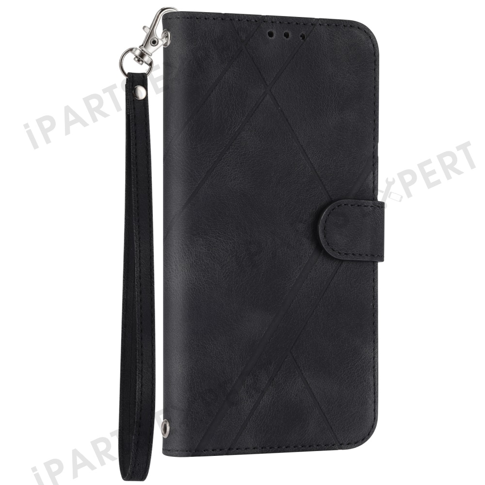 For Samsung Galaxy A56 5G Case Imprinted Line Leather Phone Cover with Handy Strap - Black