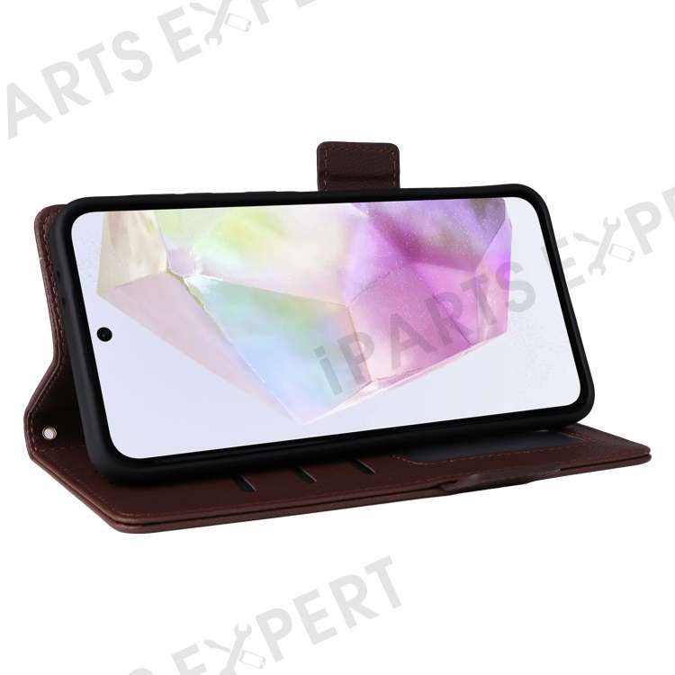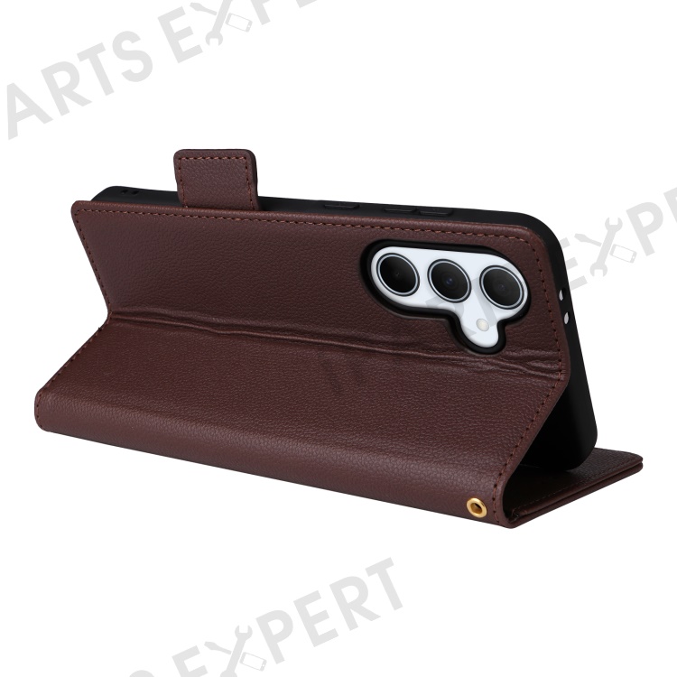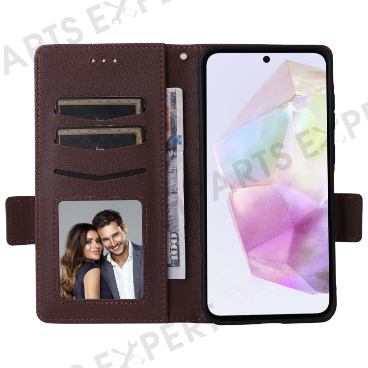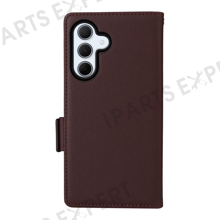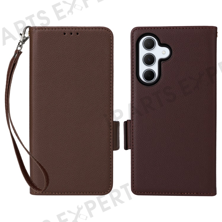 For Samsung Galaxy A56 5G Case with Wrist Strap Litchi Texture PU Leather Wallet Phone Cover - Brown