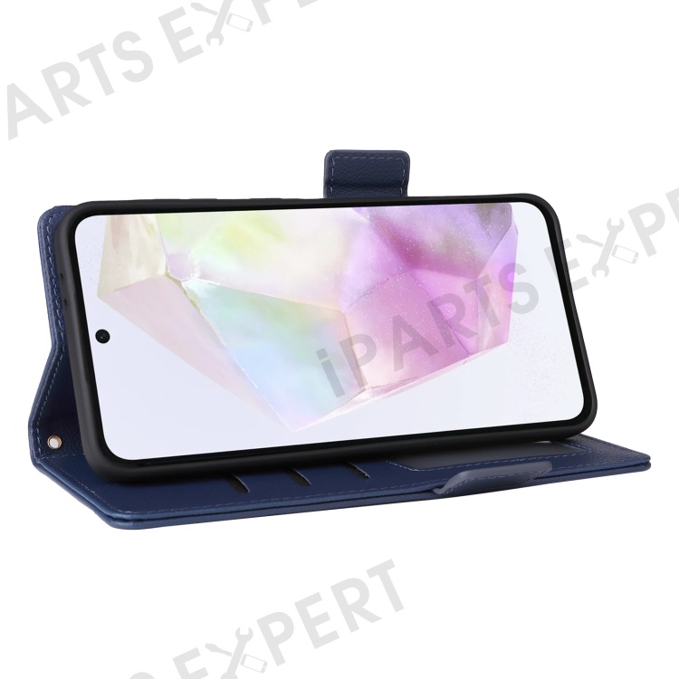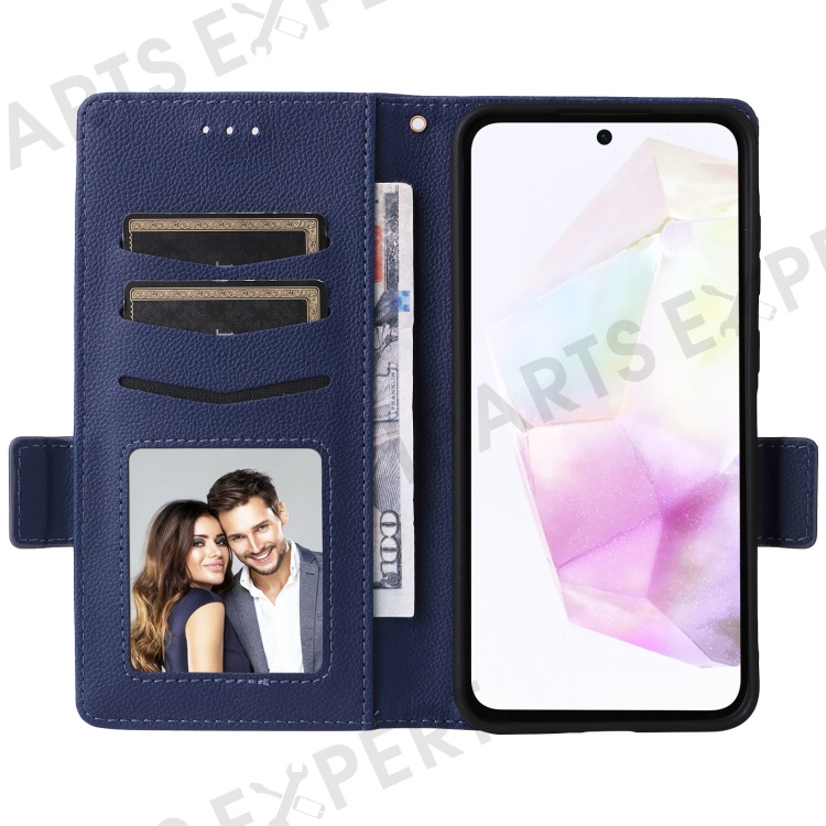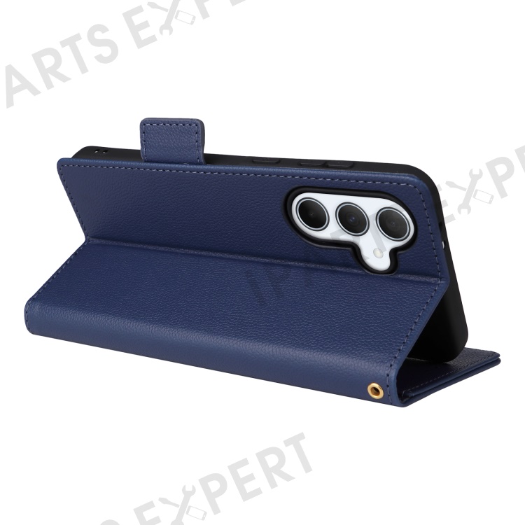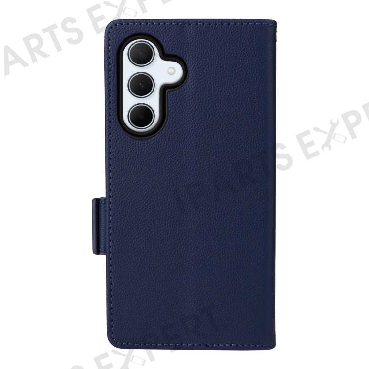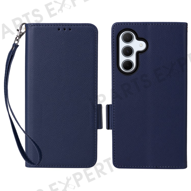 For Samsung Galaxy A56 5G Case with Wrist Strap Litchi Texture PU Leather Wallet Phone Cover - Dark Blue