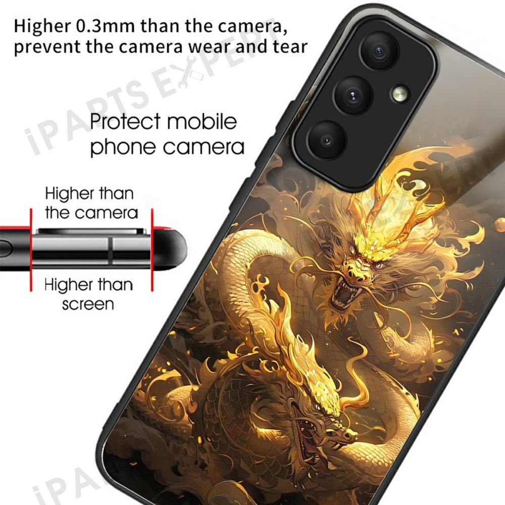 For Samsung Galaxy A56 5G Case Tempered Glass TPU Drop-Proof Pattern Printing Phone Cover - Golden Dragon