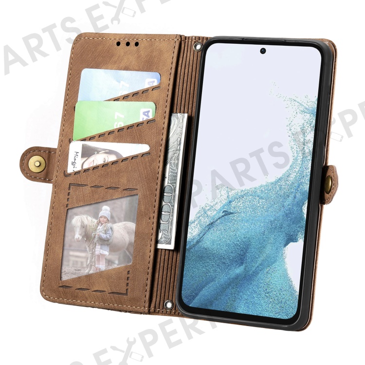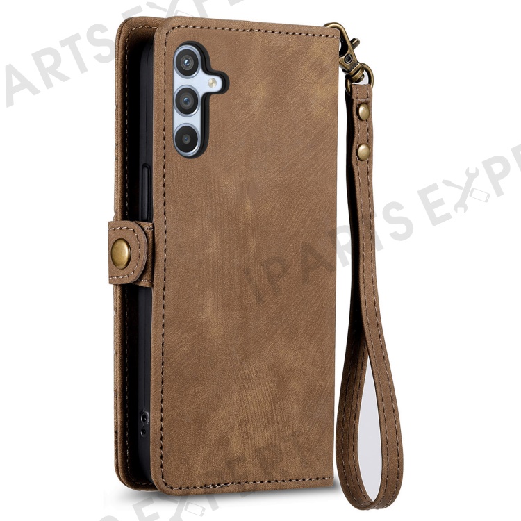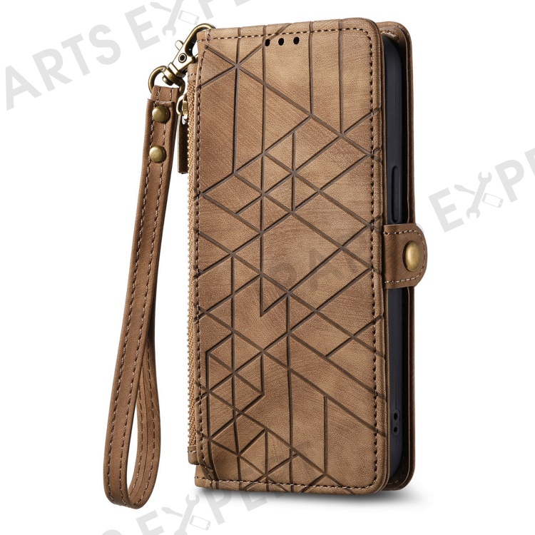 For Samsung Galaxy A56 5G Case Zipper Wallet Geometry Lines Leather Phone Cover - Brown