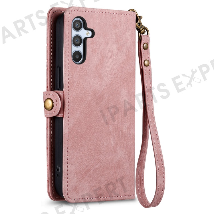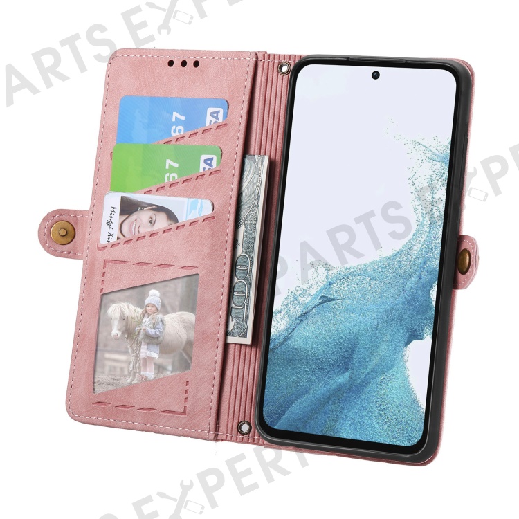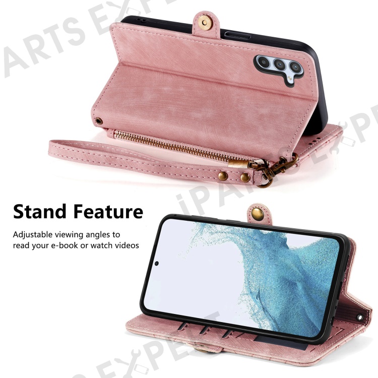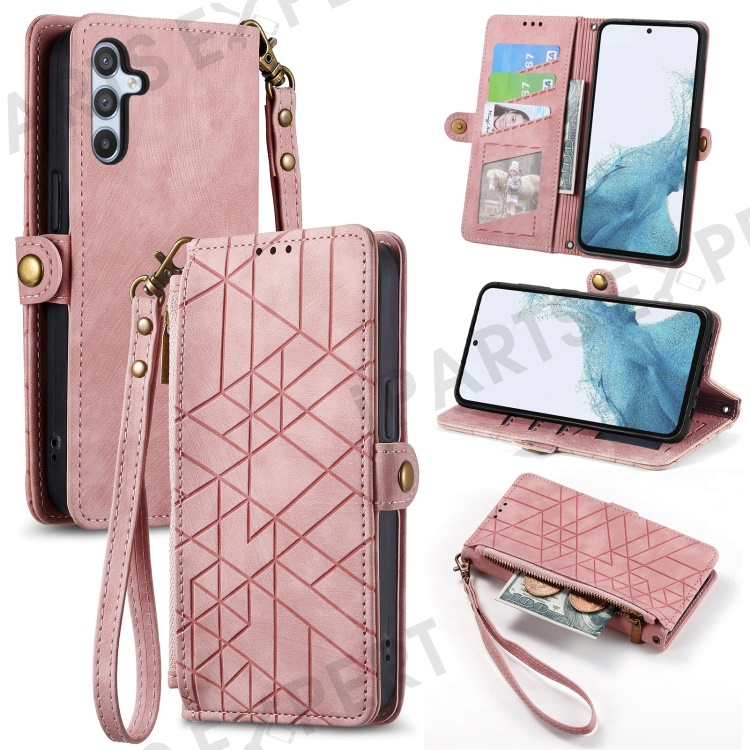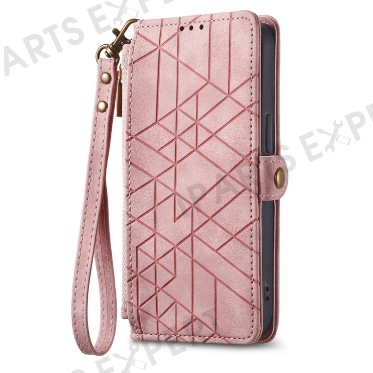 For Samsung Galaxy A56 5G Case Zipper Wallet Geometry Lines Leather Phone Cover - Pink
