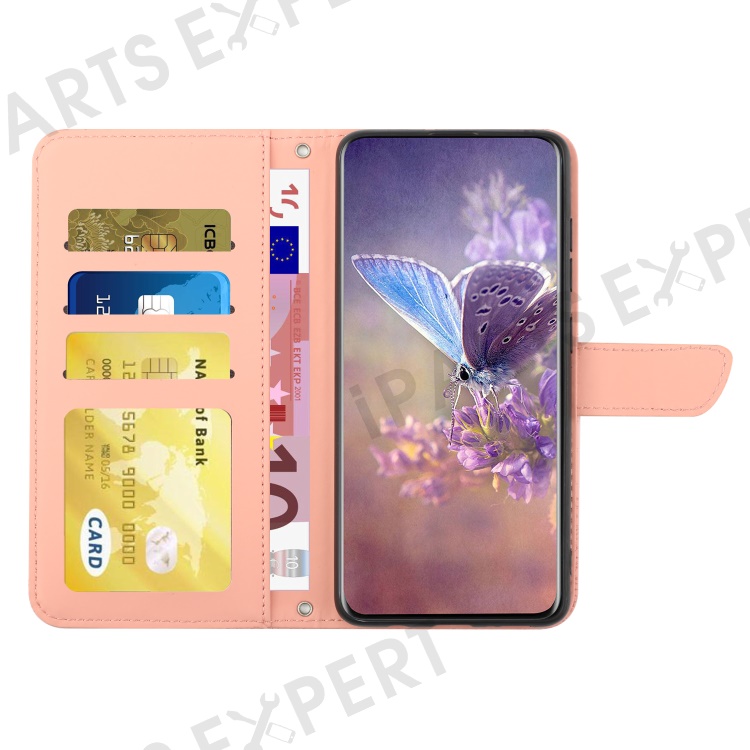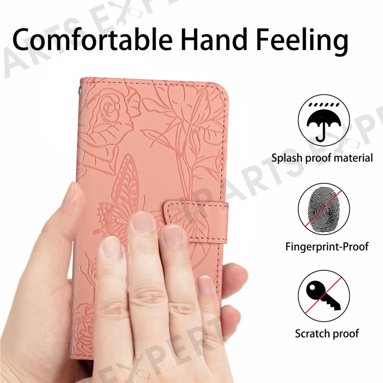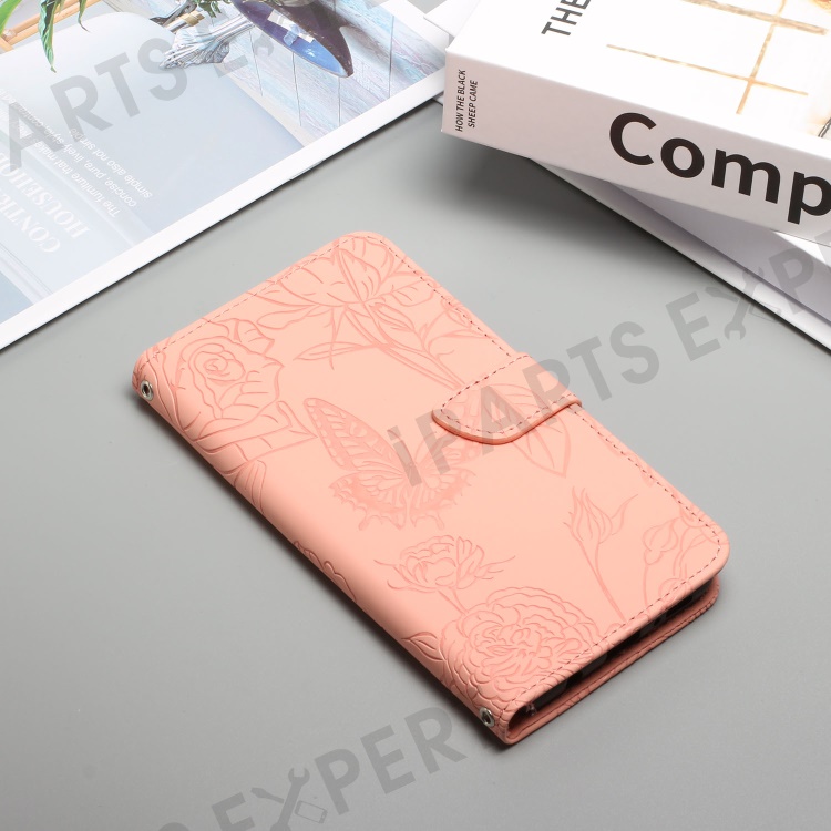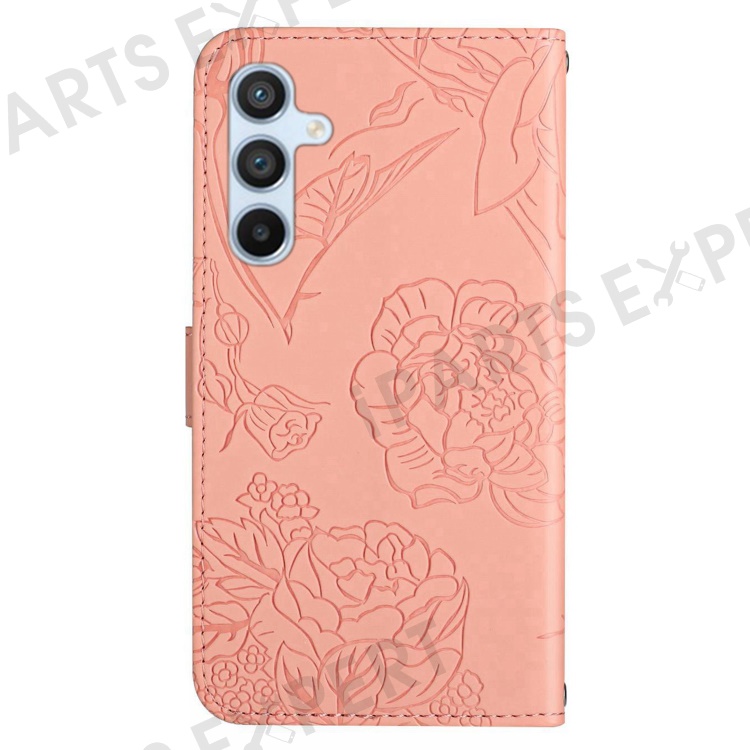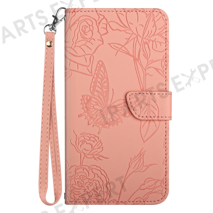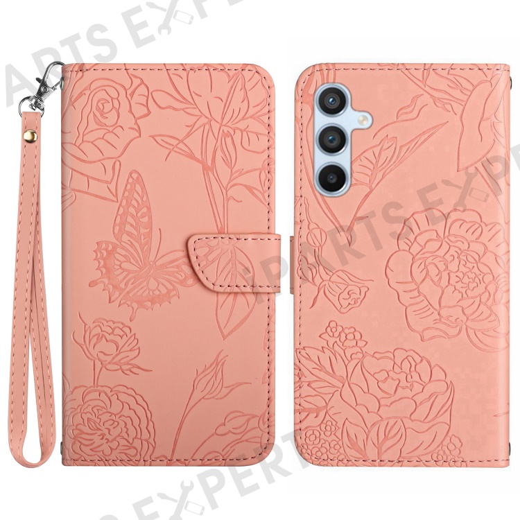 For Samsung Galaxy A56 5G / M56 5G Case Leather Phone Cover with Strap, Butterfly Flower Imprint - Pink
