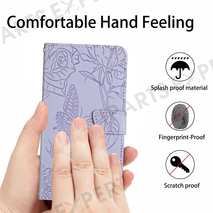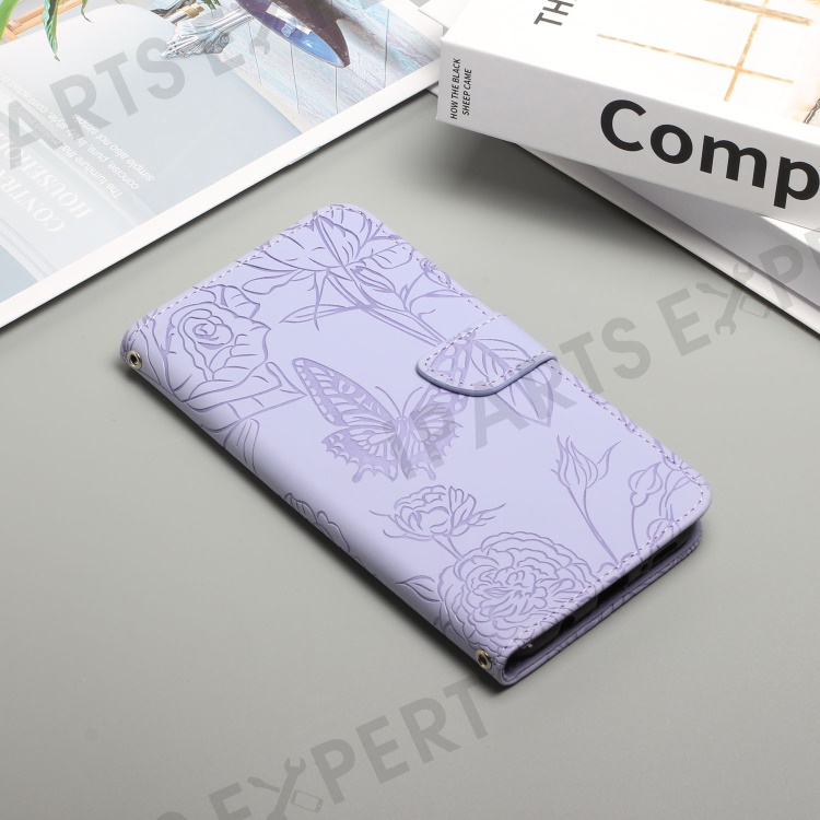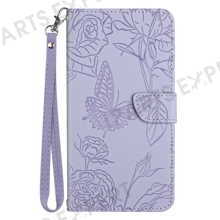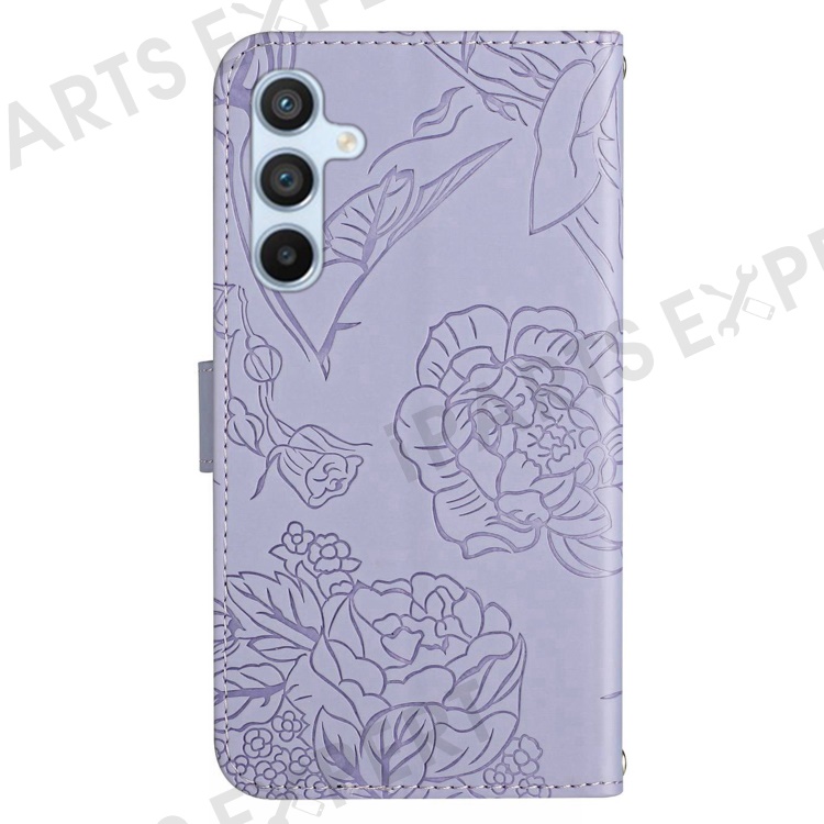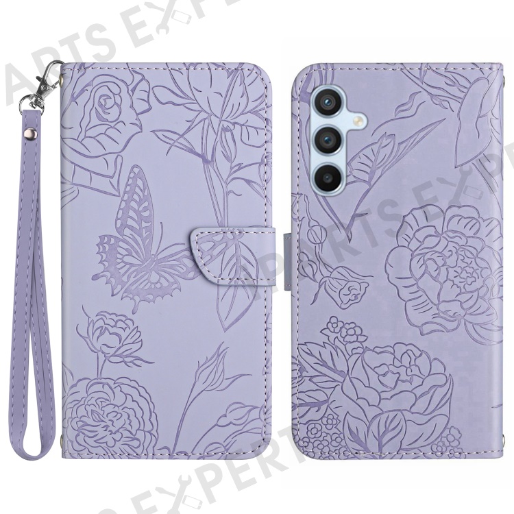 For Samsung Galaxy A56 5G / M56 5G Case Leather Phone Cover with Strap, Butterfly Flower Imprint - Purple