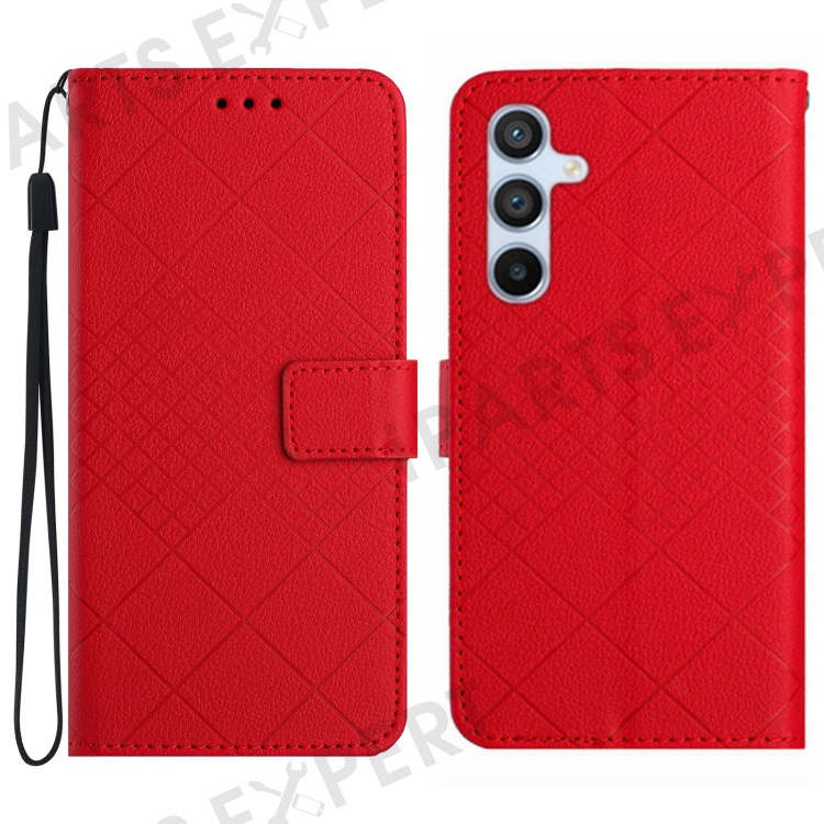 For Samsung Galaxy A56 5G / M56 5G Wallet Phone Case Imprint PU Leather Flip Folio Cover - Red