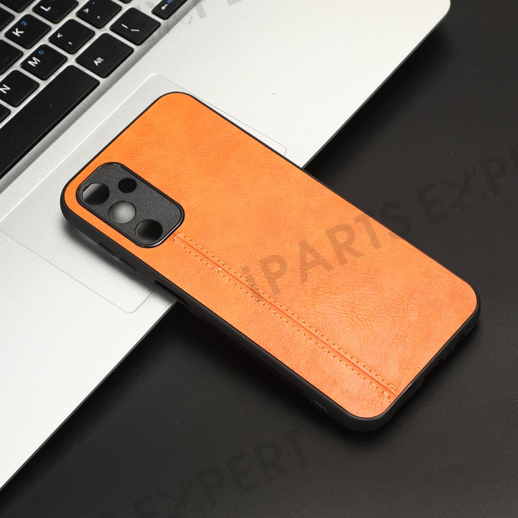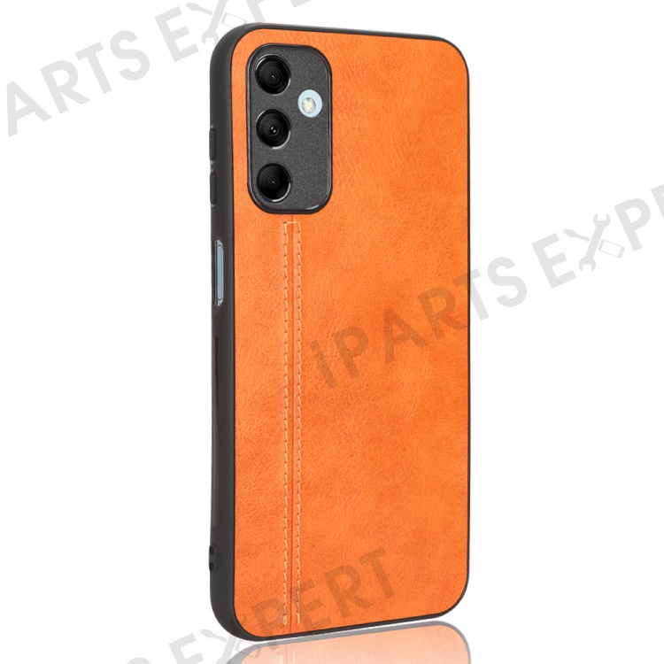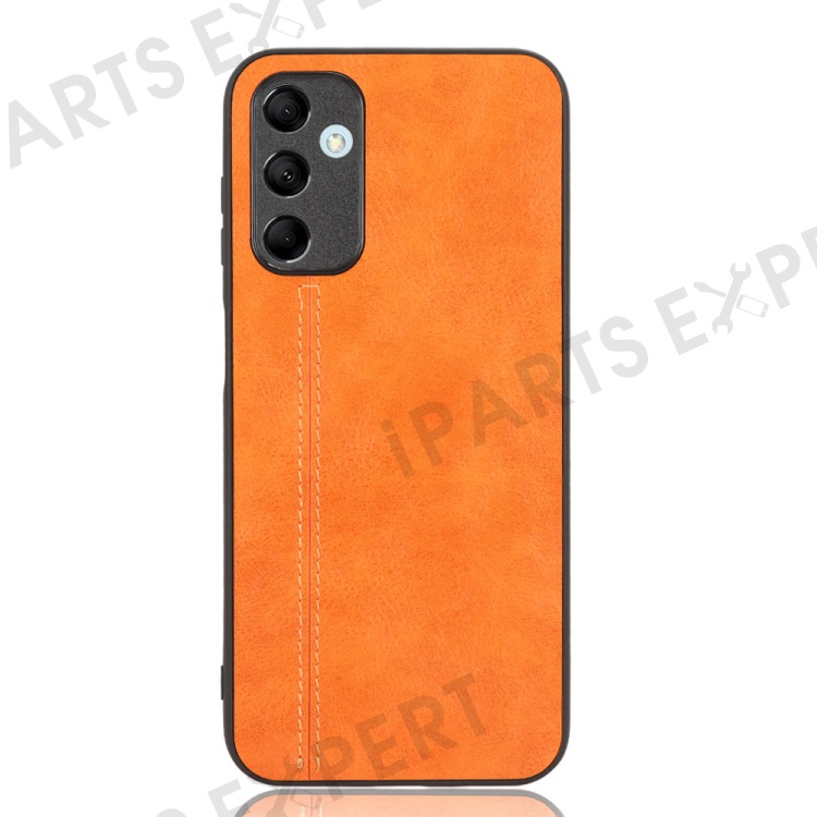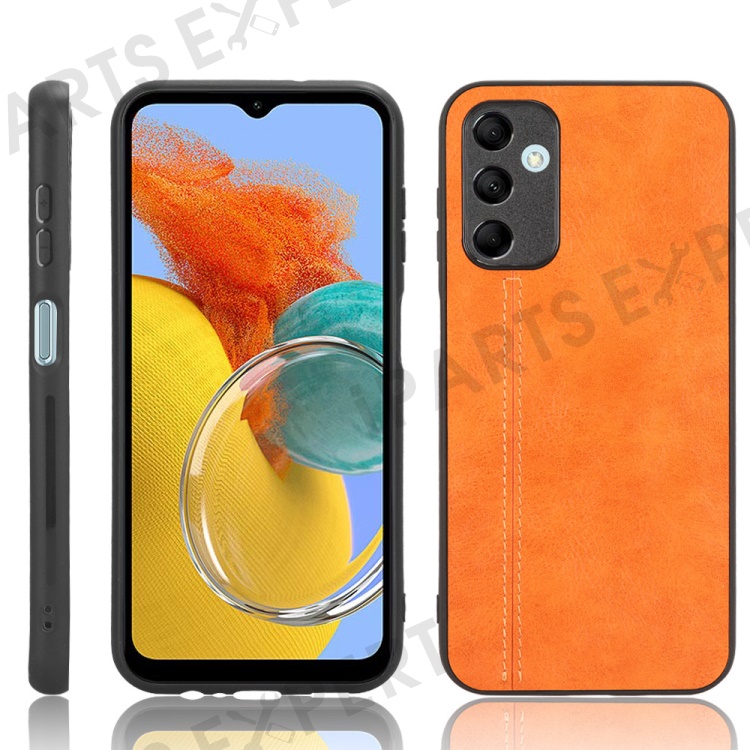 For Samsung Galaxy M14 5G Leather Coated TPU+PC Phone Case Cowhide Texture Anti-scratch Cover - Orange