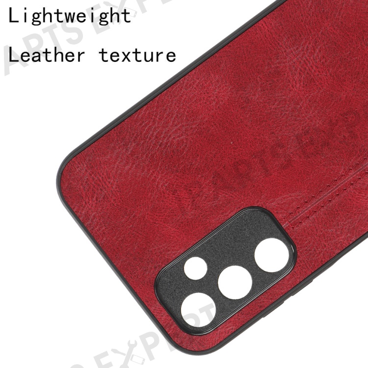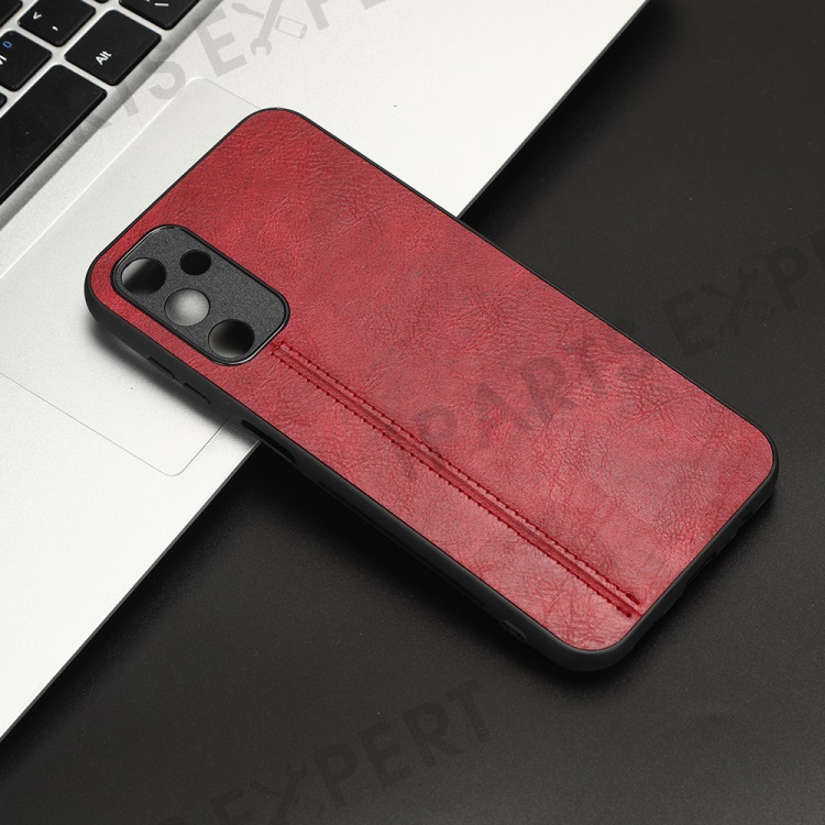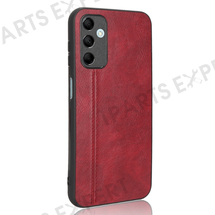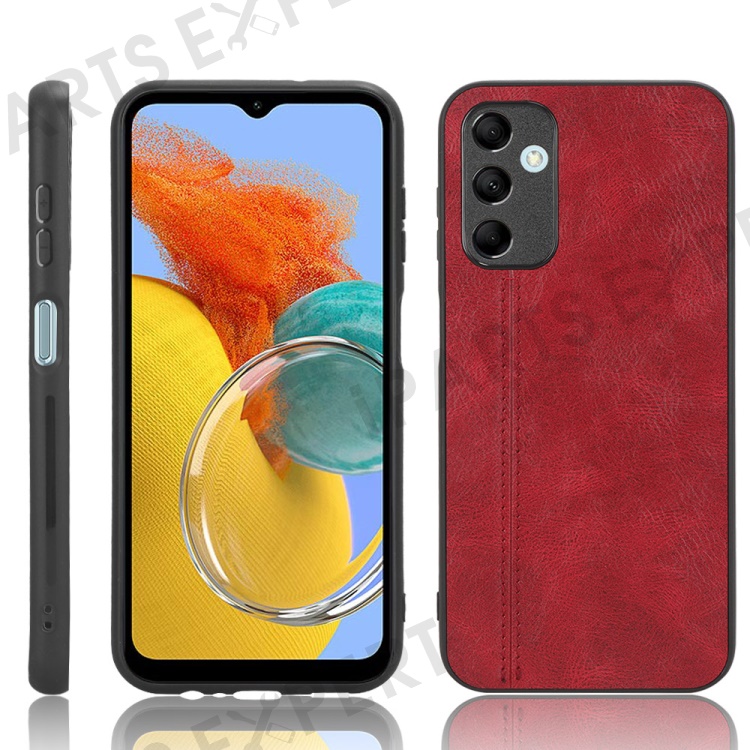 For Samsung Galaxy M14 5G Leather Coated TPU+PC Phone Case Cowhide Texture Anti-scratch Cover - Red