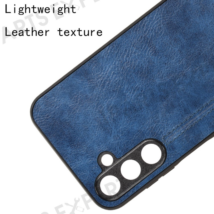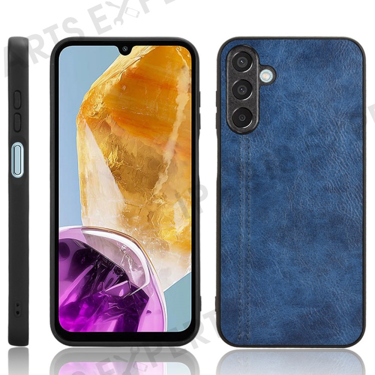 For Samsung Galaxy M15 5G Case Leather Coated PC+TPU Cover Stitching Line - Blue