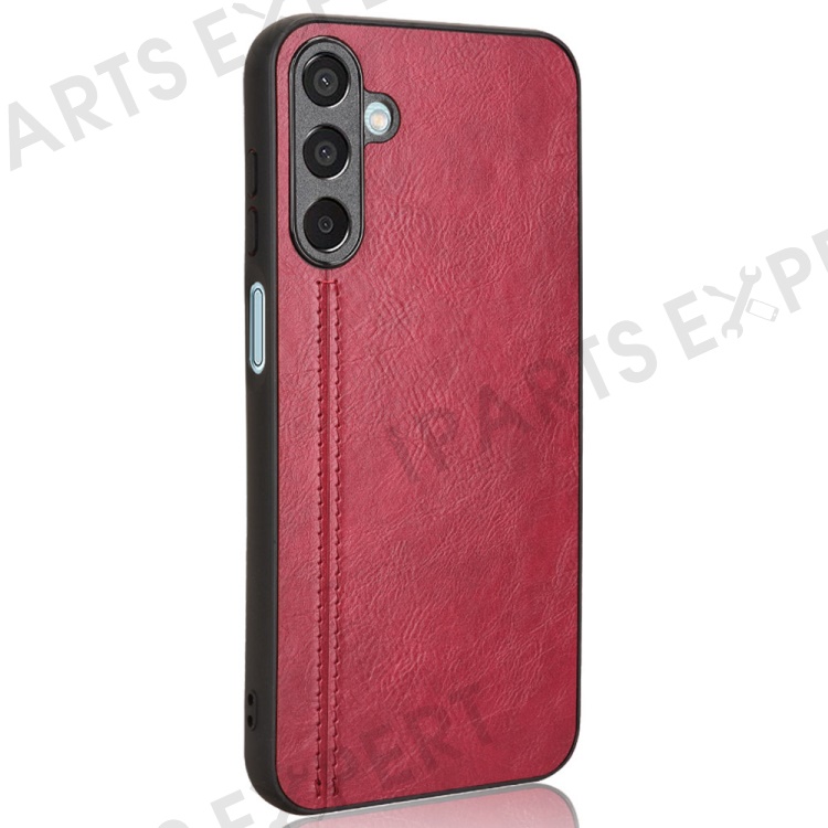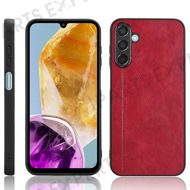 For Samsung Galaxy M15 5G Case Leather Coated PC+TPU Cover Stitching Line - Red