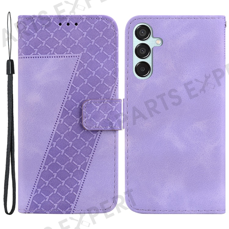 For Samsung Galaxy M15 5G / F15 5G Case Leather Wallet Stand Cover Imprint 7-Shape - Purple