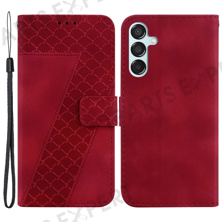 For Samsung Galaxy M15 5G / F15 5G Case Leather Wallet Stand Cover Imprint 7-Shape - Red