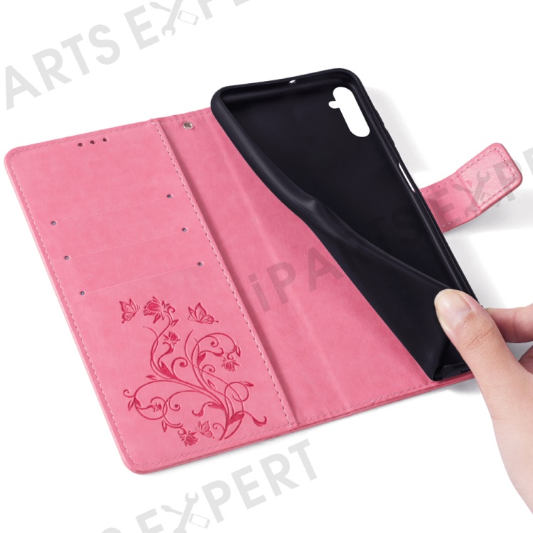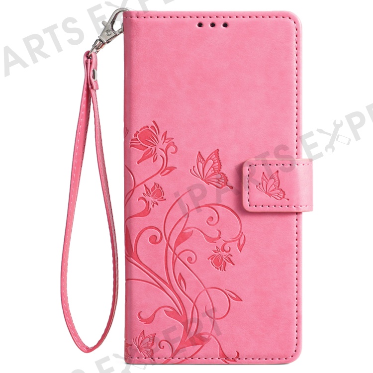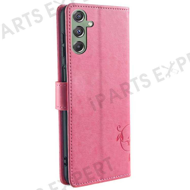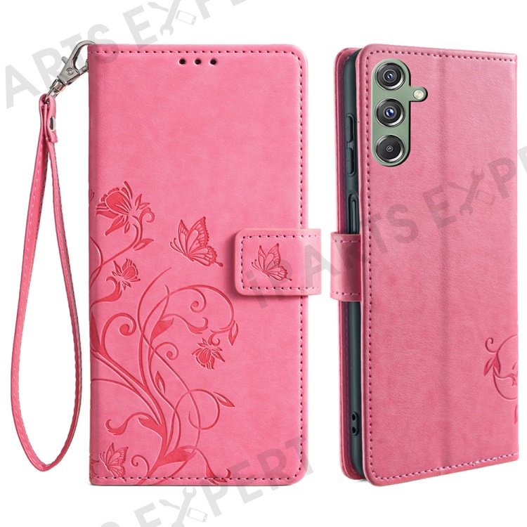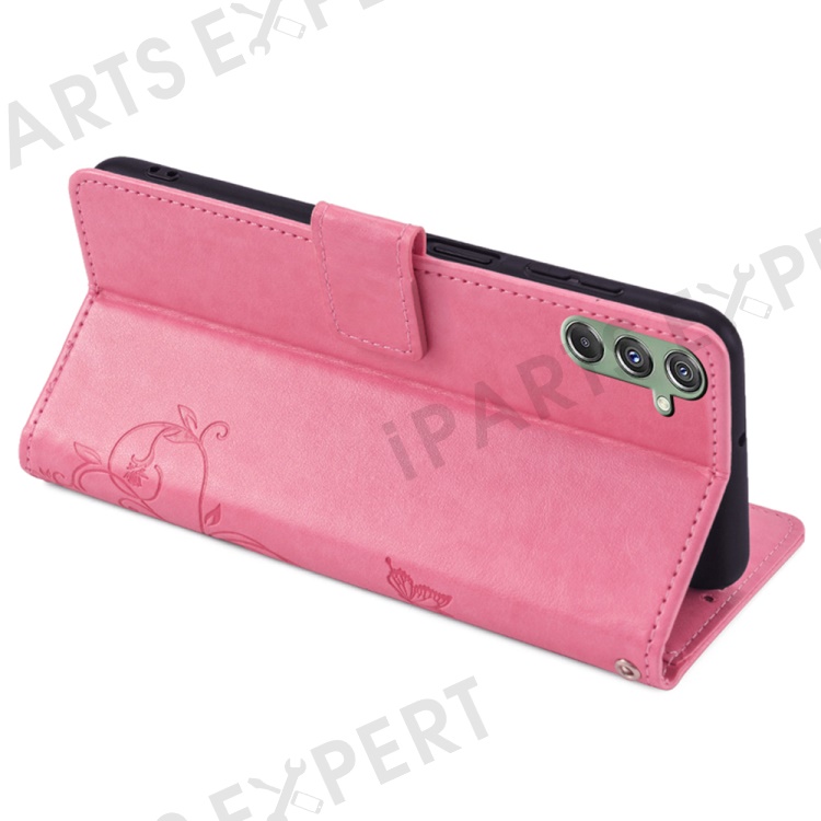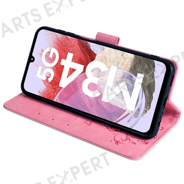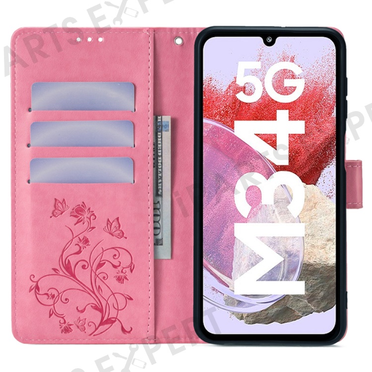 For Samsung Galaxy M34 5G / F34 5G Case PU Leather Card Slots Holder Pocket Butterfly Flower Phone Cover - Pink